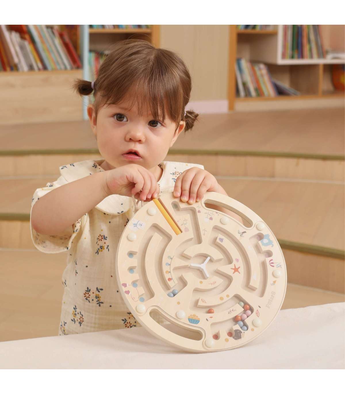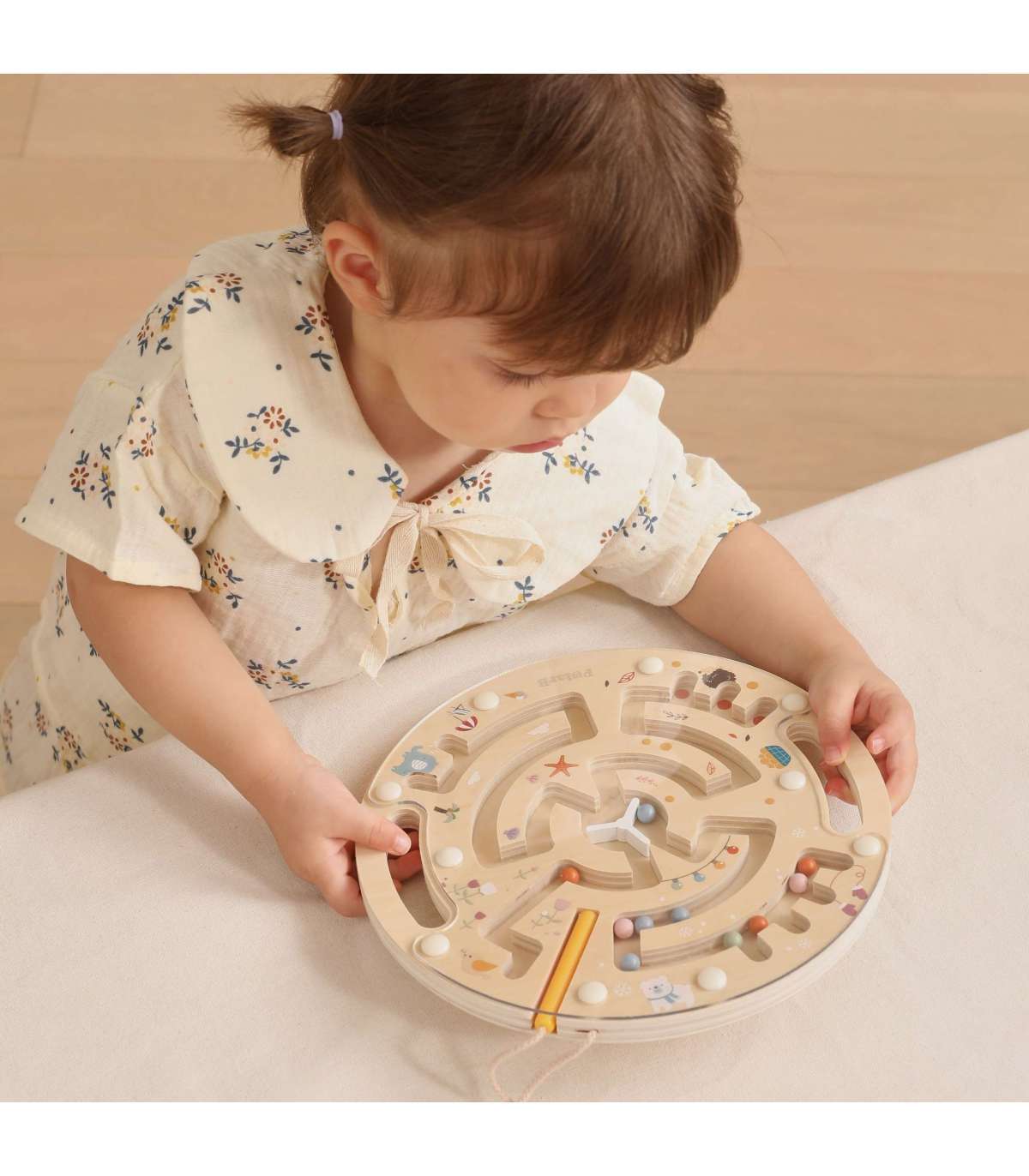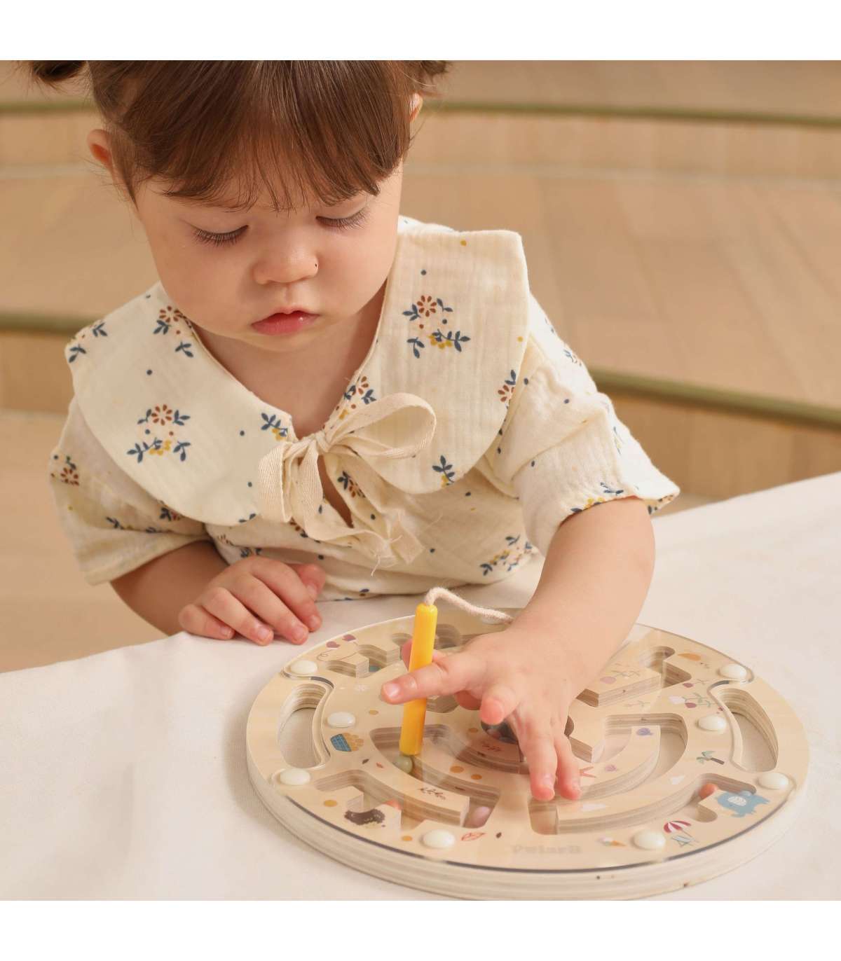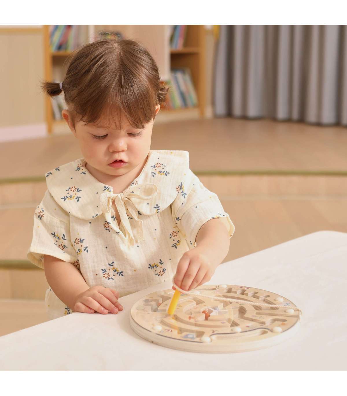 Labirynt magnetyczny od marki VIGA Wykonany z solidnego drewna i ozdobiony uroczymi ilustracjami przedstawiającymi 4 pory roku, zapewnia nie tylko świetną zabawę, ale również wspiera rozwój zdolności manualnych i logicznego myślenia. Dzięki magnetycznemu rysikowi dziecko może przesuwać kolorowe kulki przez labirynt, ćwicząc koordynację ręka-oko.