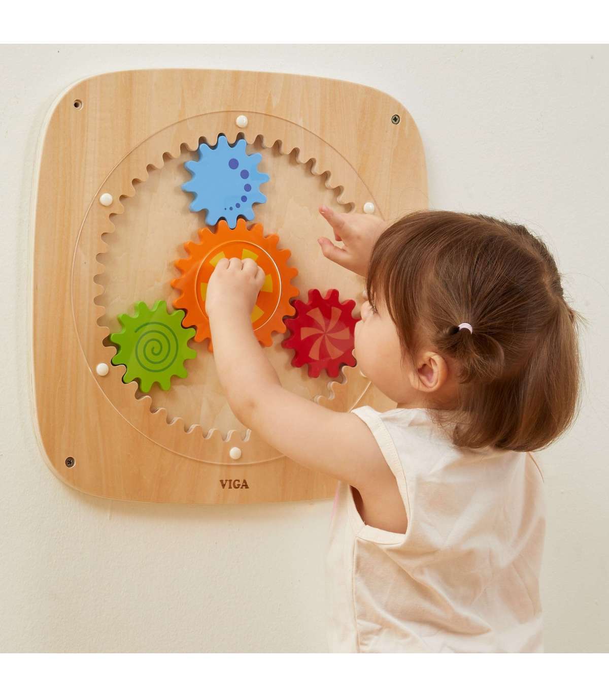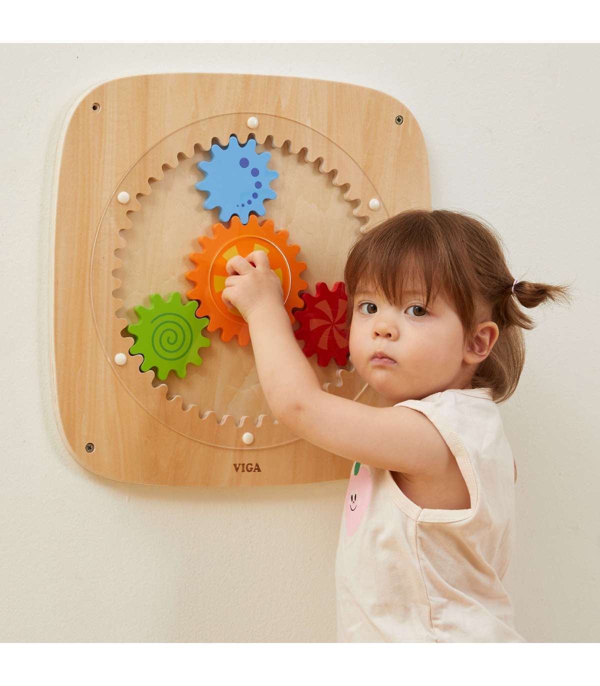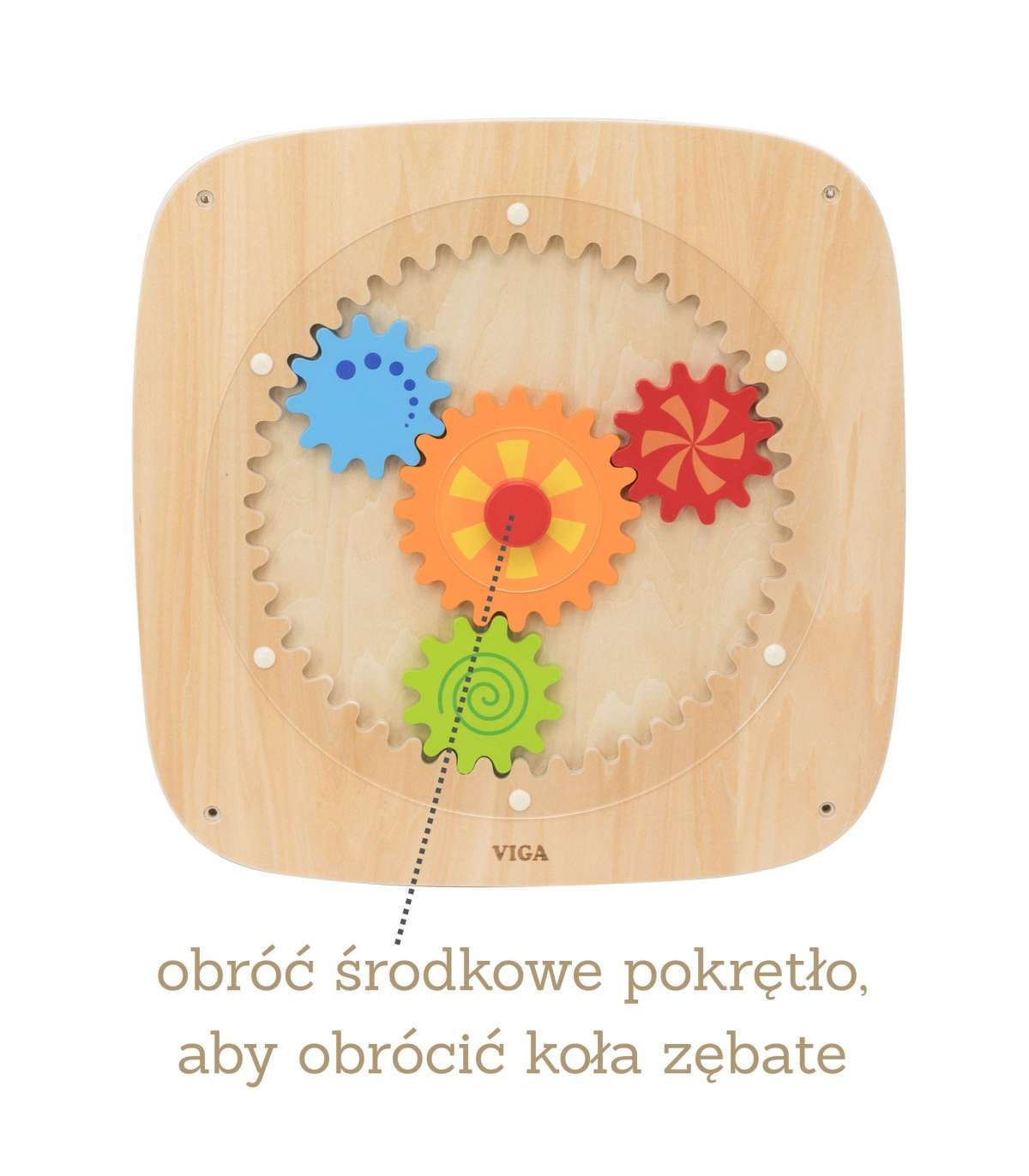 Tutvustame imelist harivat mänguasja, mis arendab teie lapse peenmotoorikat ja loogilist mõtlemist! See seinale kinnitatav tahvel värviliste hammasratastega VIGA pole mitte ainult suur lõbu, vaid ka õppimisvahend. Laps saab keerata nuppu, et panna kõik rattad liikuma. Haakuvad hammasrattad panevad need kõik korraga pöörlema, aidates mõista mõistet 'jõud ja liikumine'. Rattad on erinevate mustritega, luues pööramisel visuaalseid efekte. Mänguasi on täielikult valmistatud puidust, tagades vastupidavuse ja ohutuse. See sobib suurepäraselt osana suuremast tegevusseinast lapse toas, lasteaias või lastehoius. See on ideaalne valik iga väikese uurija jaoks!