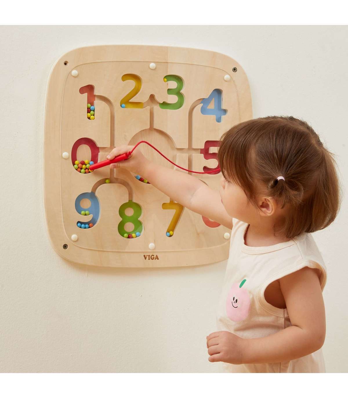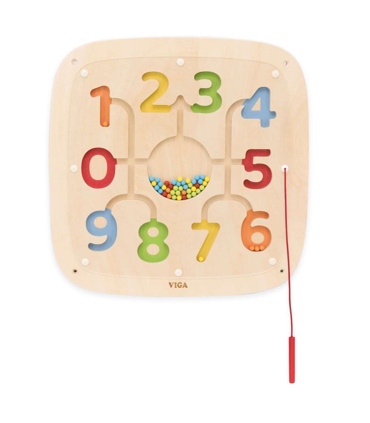 Avasta numbrite ja värvide lõbus maailm selle interaktiivse VIGA puidust tahvliga! See hariv mänguasi on loodud selleks, et praktilisel ja nauditaval viisil õpetada lapsi lugema, värve tundma ja täpset liigutust. Magnetilise pliiatsi abil lükkab su laps värvilisi pärleid, sobitades neid vastavate numbrite ja radadega. See on suurepärane viis arendada matemaatilisi ja motoorseid oskusi ühes! Tahvel on vastupidav, ohutu ja lihtne seinale kinnitada, mis säästab põrandapinda.