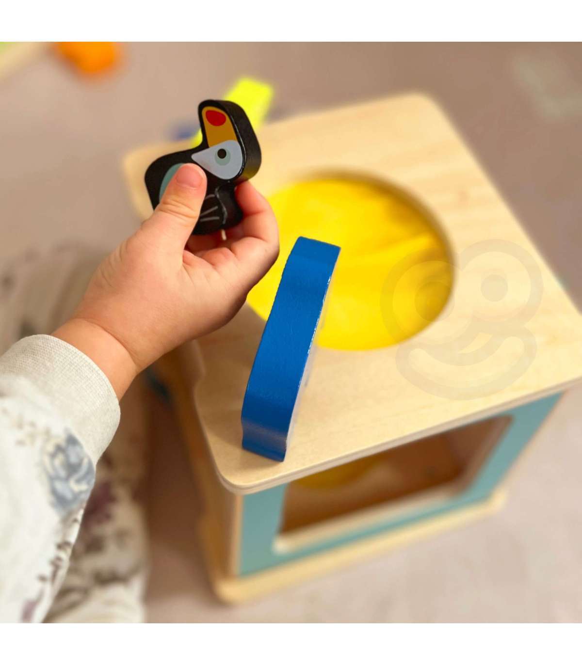 - - Motorykę małą - Manipulowanie przedmiotami wewnątrz pudełka oraz precyzyjne układanie puzzli ćwiczy sprawność palców.