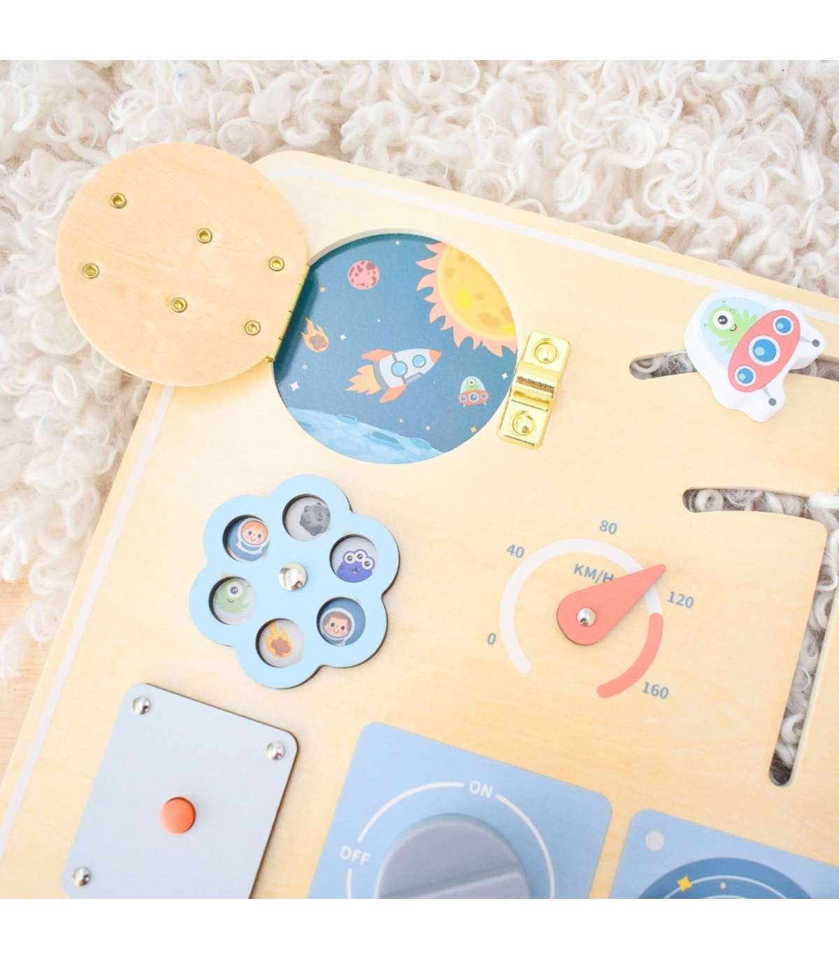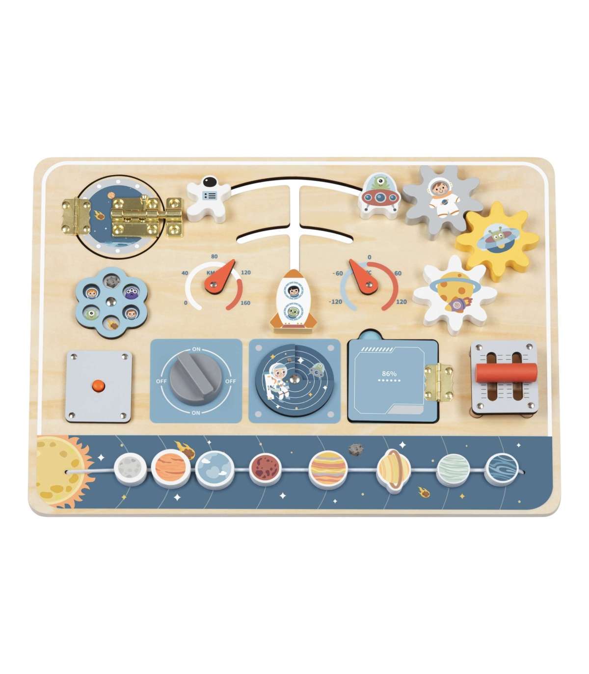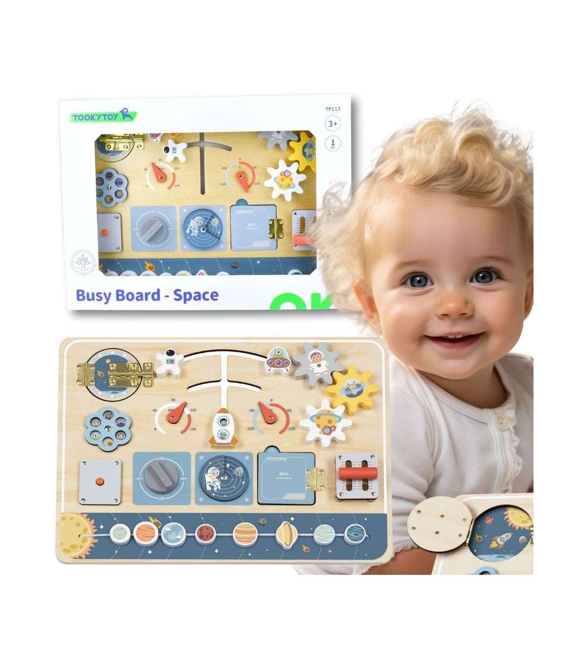 Wyobraź sobie panel kontrolny prawdziwej stacji kosmicznej, gdzie każdy przycisk, pokrętło i dźwignia kryje fascynującą tajemnicę. Ta wyjątkowa tablica manipulacyjna marki Tooky Toy zabiera dzieci w niezapomnianą podróż po Układzie Słonecznym, łącząc edukację z pasjonującą zabawą. Kolorowa grafika z astronautami, planetami i rakietami ożywia wyobraźnię, a różnorodne elementy interaktywne zapewniają godziny eksploracji i odkrywania. To nie tylko zabawka – to brama do wszechświata, która rozwija ciekawość świata i pragnienie poznawania kosmosu.