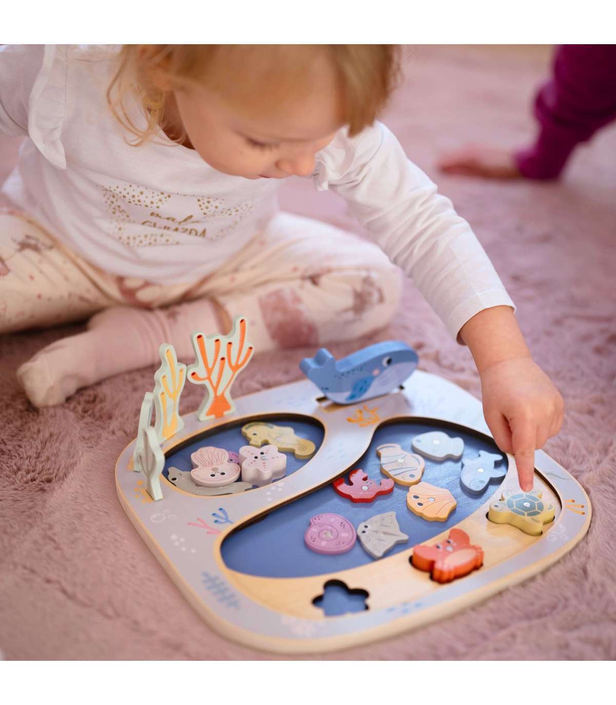 Sukeldu loomingulise mängu veealusesse maailma puidust mänguga firma Tooky Toy! Värvikad mereolendid, funktsionaalsed õnged ja kaunilt valmistatud mängulaud panevad iga lapse tundma end väikese avastajana. Selle komplektiga arendab su laps kujutlusvõimet ja muudab tavapärase vabaaja põnevaks veeäärseks seikluseks.