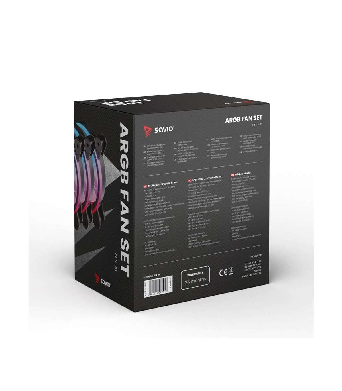 SAVIO FAN-01 4-pack 120mm ARGB fan including controller and remote control