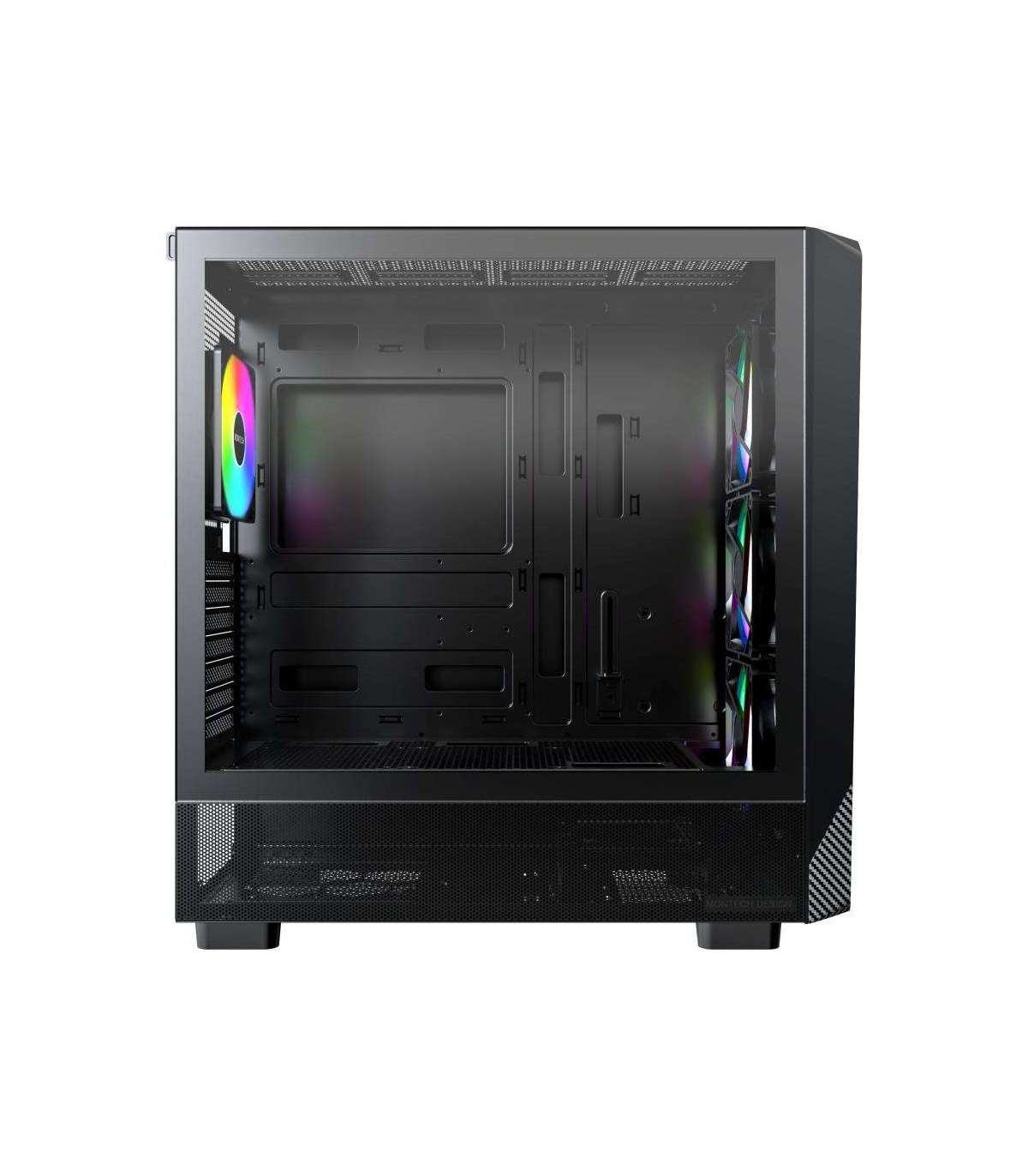 Передняя панель с карбоновым узором придает корпусу выразительный и стильный вид. Лаконичные линии, дополненные эффектной ARGB-подсветкой, создают впечатление современного и премиального продукта, который гармонично дополнит любое игровое или рабочее пространство.