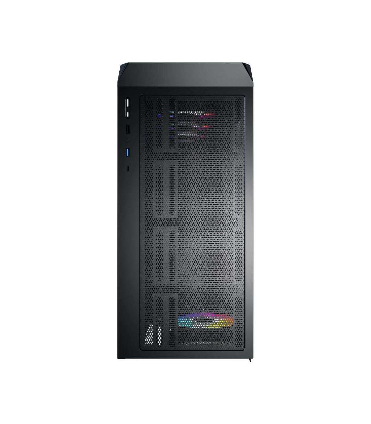 Передняя панель с высокопроницаемой сеткой (пористость до 33%) обеспечивает эффективный забор воздуха и стабильную работу системы даже под нагрузкой. В комплекте уже установлены 4 ARGB-вентилятора с 25 режимами подсветки, которые можно переключать кнопкой или синхронизировать с материнской платой.