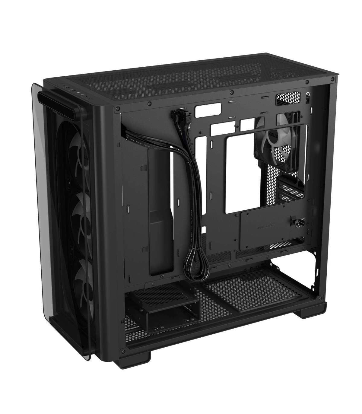 • Standoff-mounted tempered-glass front panel: Enlarged window design lets users fully enjoy the captivating visuals of the front ARGB fans