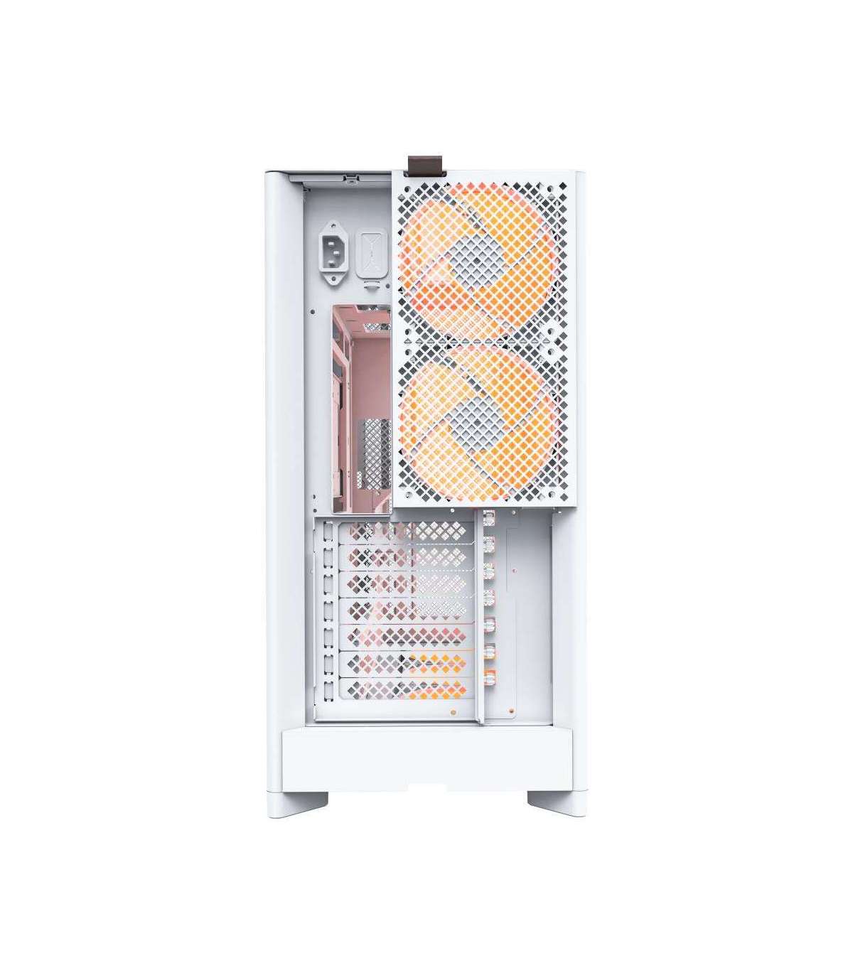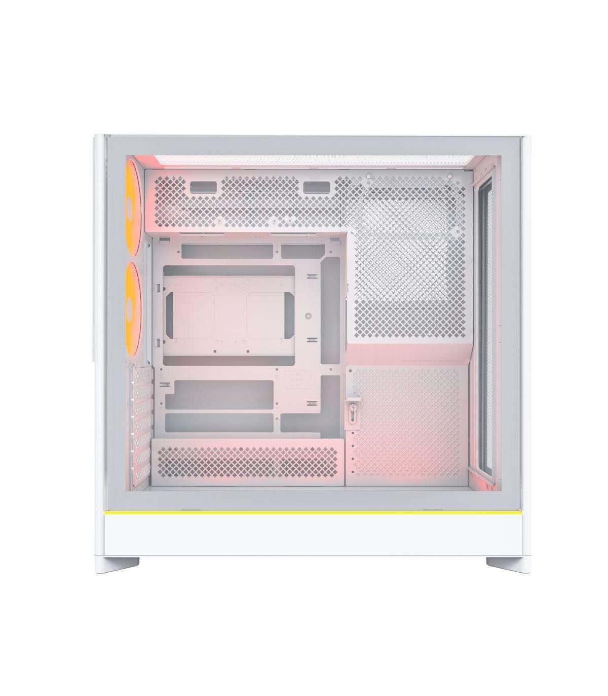 Прозрачная боковая панель позволяет демонстрировать внутренние компоненты и подсветку, что особенно оценят энтузиасты кастомизации. Белый цвет корпуса добавляет легкости и визуальной чистоты, гармонично сочетаясь с современными интерьерами и рабочими пространствами.
