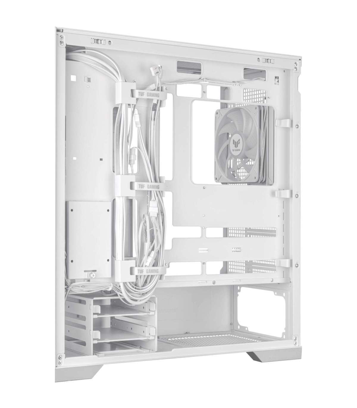 The TUF Gaming GT302 ARGB comes with a cable grommet bar featuring three large straps to let you neatly organize two sets of cables, and three cable clips on the side for tidy routing of the 8-pin CPU power cable.
