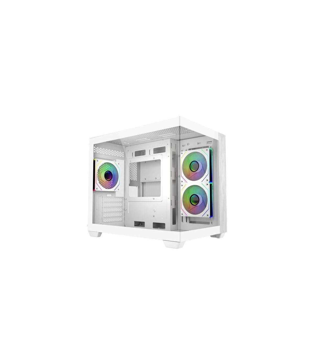 Dual tempered glass panels with 45° bevels offer a clean, wide-angle showcase of your build and lighting.