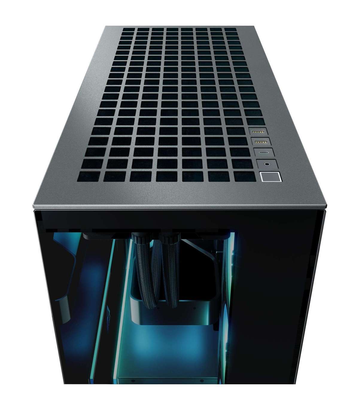 Integrated glass panel with 24 A-RGB LEDs illuminates the lower section of the case.