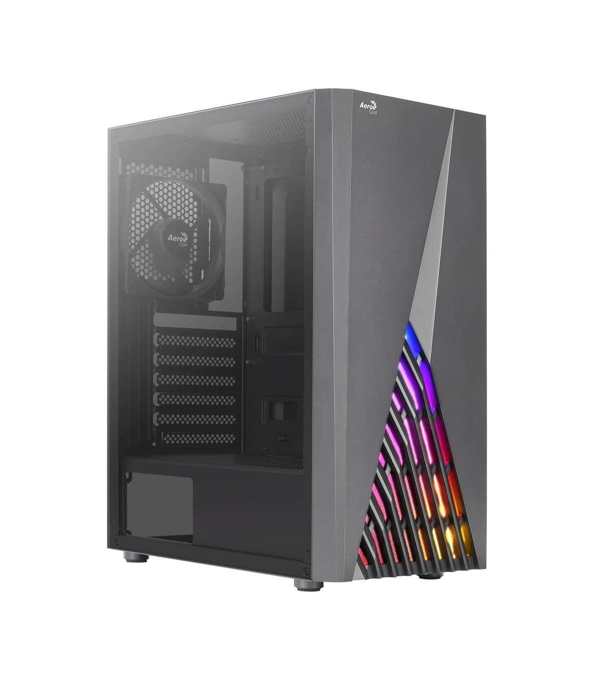 Aerocool DELTABKV1 ATX PC Case RGB Front Full Side Window 12cm Fan Black