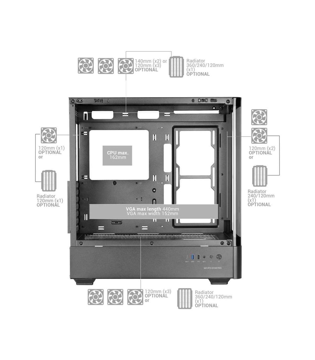 Mars Gaming MCLCDPRO computer case Midi Tower Black