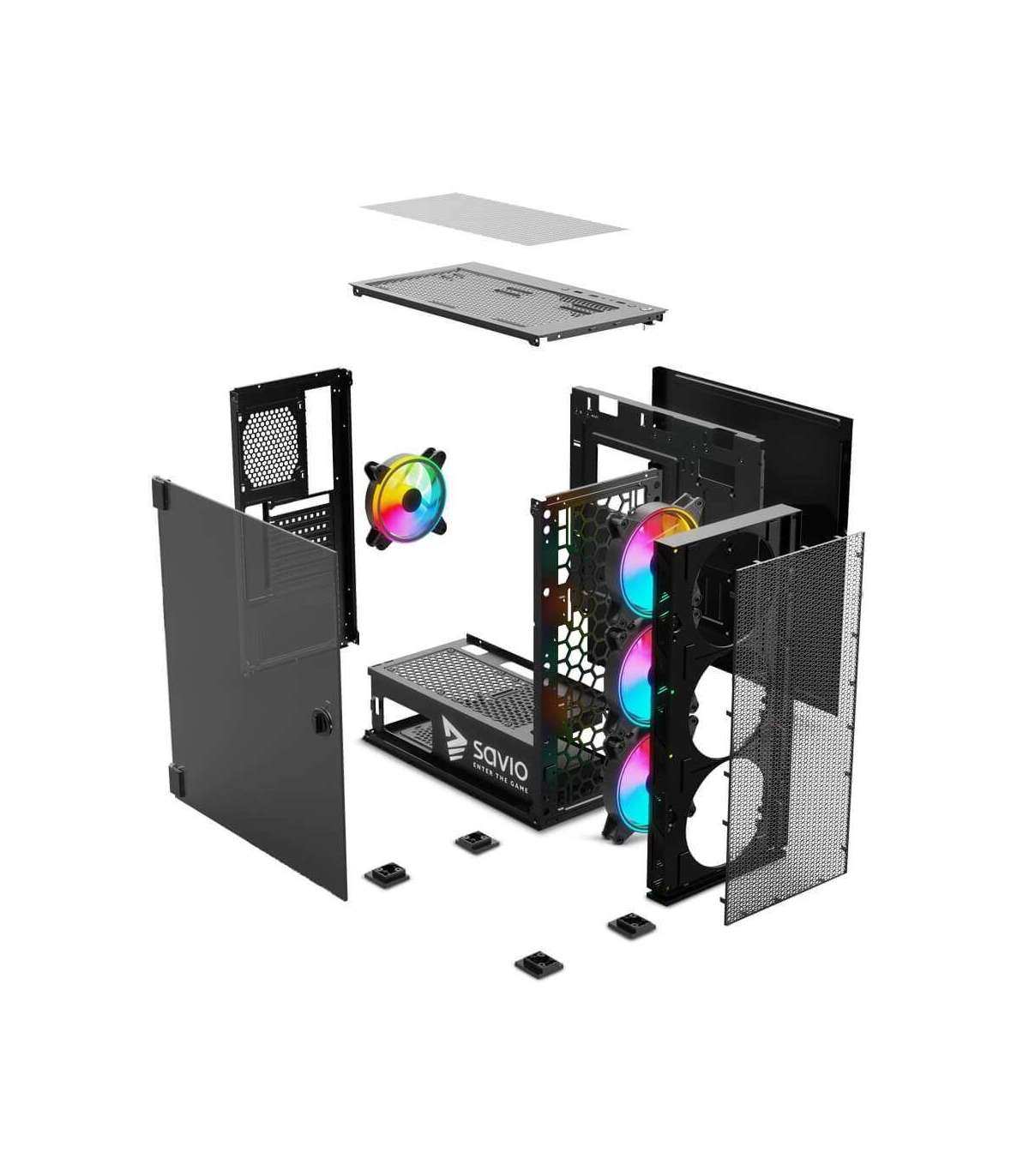 SAVIO PC Case Raptor X1 ARGB Glass/Mesh Black