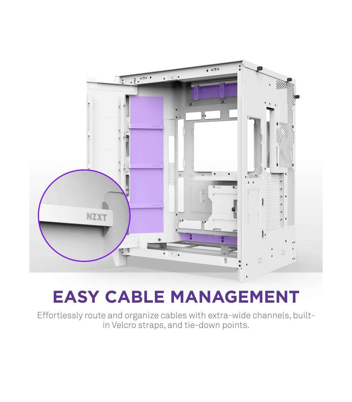 Extra-wide channels, Velcro straps, and tie-down points make cable routing simple.