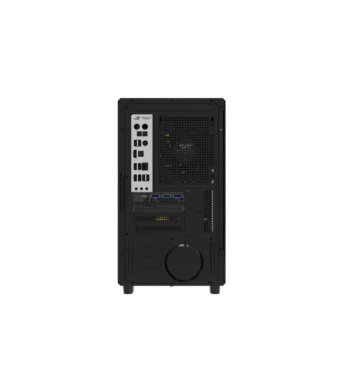The left panel is made of tempered glass to expose the computer's interior and components with RGB backlighting. The panel can be easily removed without tools.