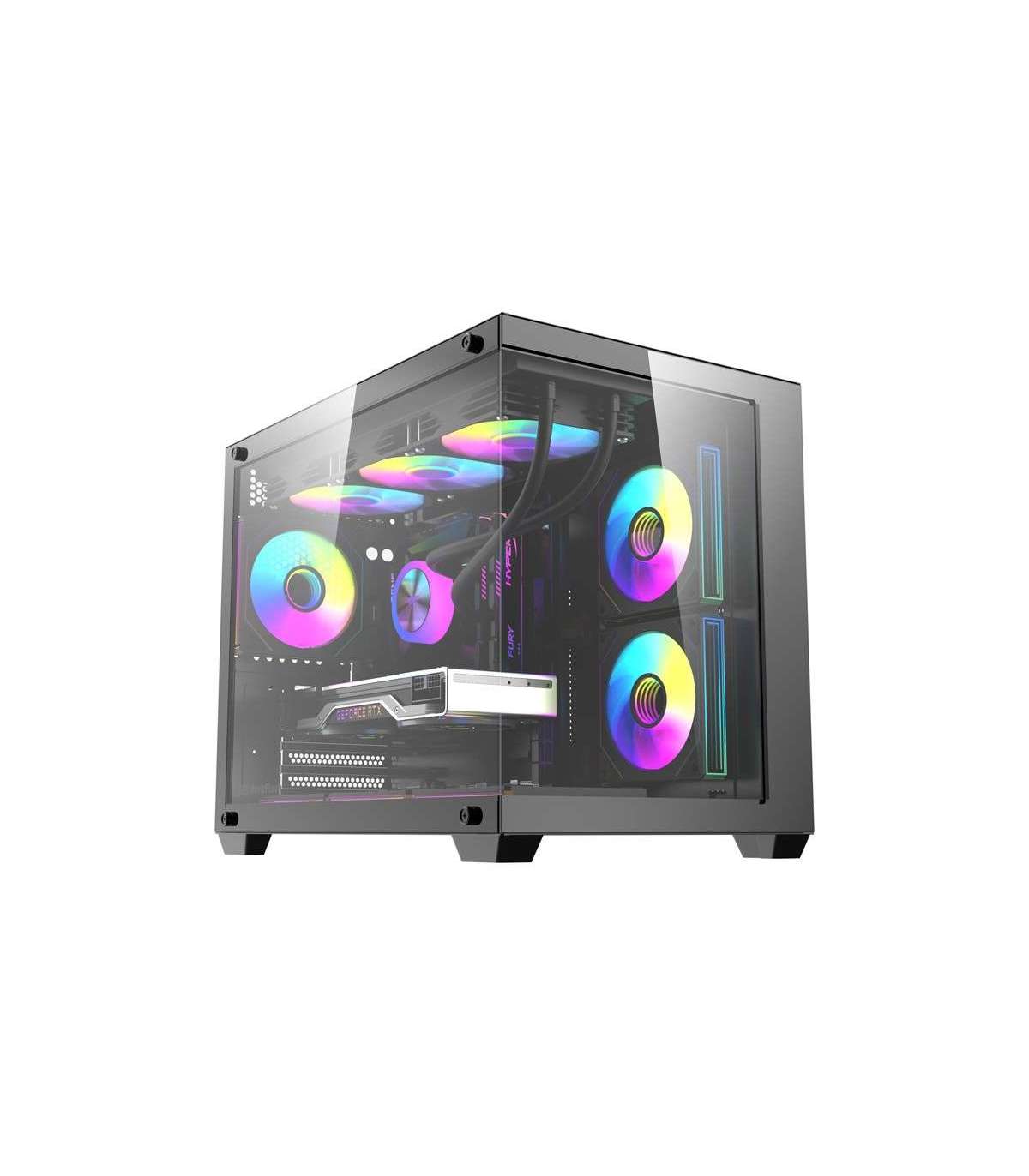 DarkFlash B275 PRO is a functional computer case that draws attention to its interior at first glance. The cornerless design provides a full 270° view of the components, and the six fans included in the set provide a ready-to-use and efficient cooling system as standard. While maintaining compact dimensions (354 x 275 x 425 mm), this model offers space for graphics cards up to 410 mm in length, CPU cooling up to 160 mm in height, and two SSDs or one HDD. So you can easily create exactly the configuration you want!