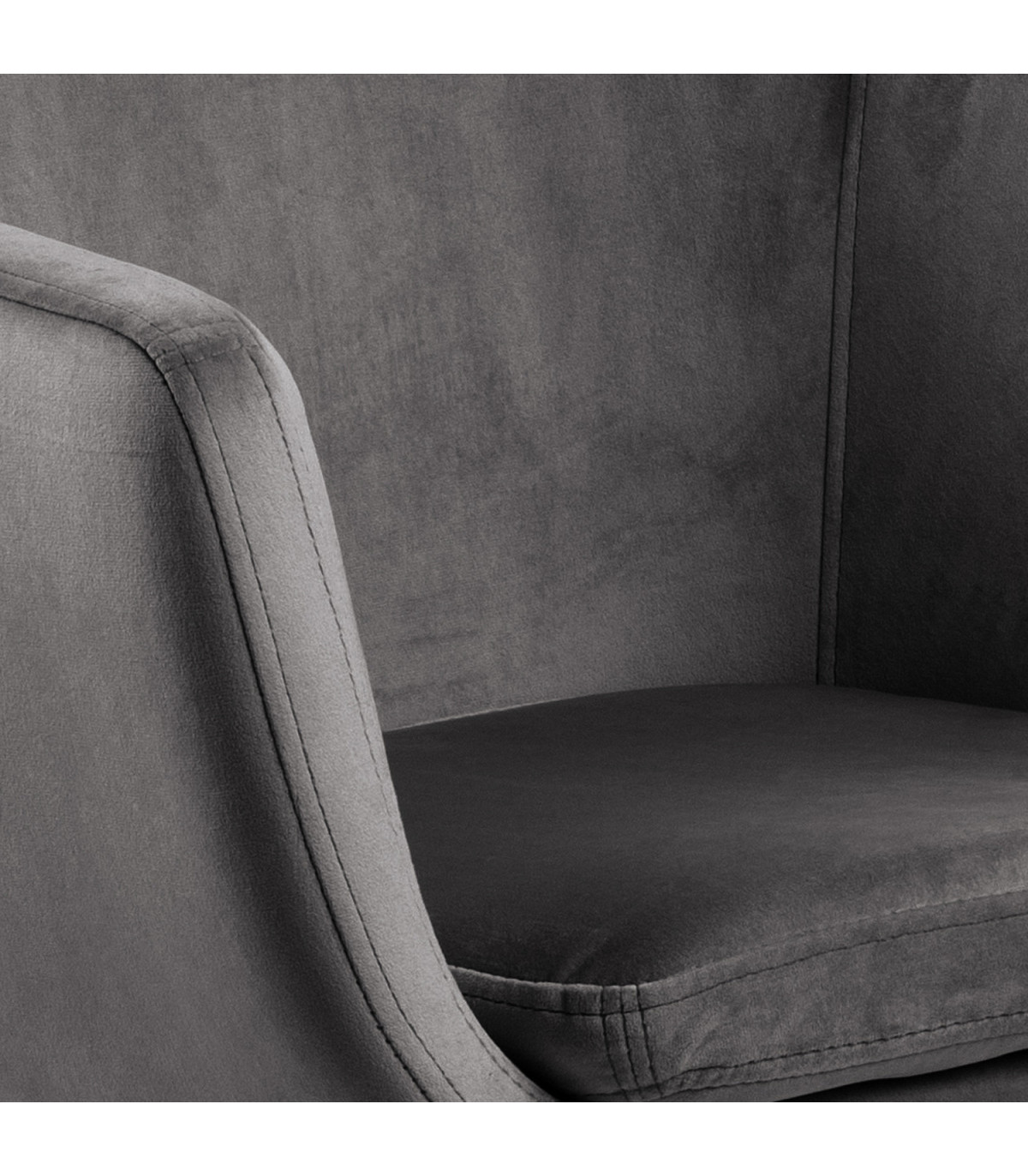 Töötool NORA tumehall. Ideaalne tool kodukontorisse. Klassikalise siluetiga tool mõjub kaasaegsena. Mugav polsterdatud iste ja käetugi muudavad selle ideaalseks kodus töötades. Töötoolil on reguleeritava kõrgusega iste ja pöördefunktsioon. Kaunis sametkangas on iseloomuliku pehme tunnetusega ja annab toolile sügavuse. Iste ja seljatugi on kaetud tumehalli kangaga. Jalarist on musta värvi metallist. Toolil on plastikrattad. Istumiskõrgus 44-54cm. Toote mõõdud on 58x58xH91cm. HOOLDUS: Hooldus piirdub tolmuimejaga ja plekieemaldamisega. Plekkide eemaldamisel tuleb olla ettevaatlik. Katsetage plekieemaldajaid esmalt vähem nähtaval alal ja tegutsege vastavalt tulemusele. Ärge kunagi kasutage lahusteid. Ärge asetage mööblit otsese päikesevalguse kätte. Aluse jaoks kasutage igapäevaseks puhastamiseks seebiveest kuivaks väänatud lappi. Rooste vältimiseks pühkige pind lapiga kuivaks. Ärge hõõruge pinda kõvade esemetega.