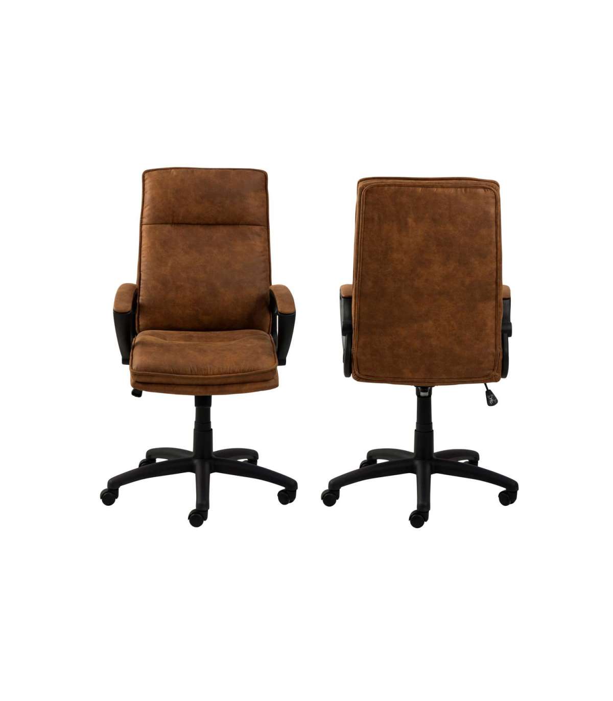 Moodne töötool on polsterdatud kaamelipruuni mikrokiudkangaga, millel on spetsiaalne kate. Kõrge seljatoe ja käetugedega istet toetab must 5-haruline alus pidurdavate ratastega, mis tagavad hõlpsama liikumise ja ohutuse. Alus on valmistatud plastikust. Toolil on pöörlemisfunktsioon, mis võimaldab hõlpsat liikumist. Gaastõstuk ja kallutusnupp võimaldavad kõrguse reguleerimist, mis tagab mugavama kogemuse. Mehhanism: pneumaatiline istmekõrguse reguleerimine, 48-57,5cm. Mõõdud on 67x69,5xH115cm.