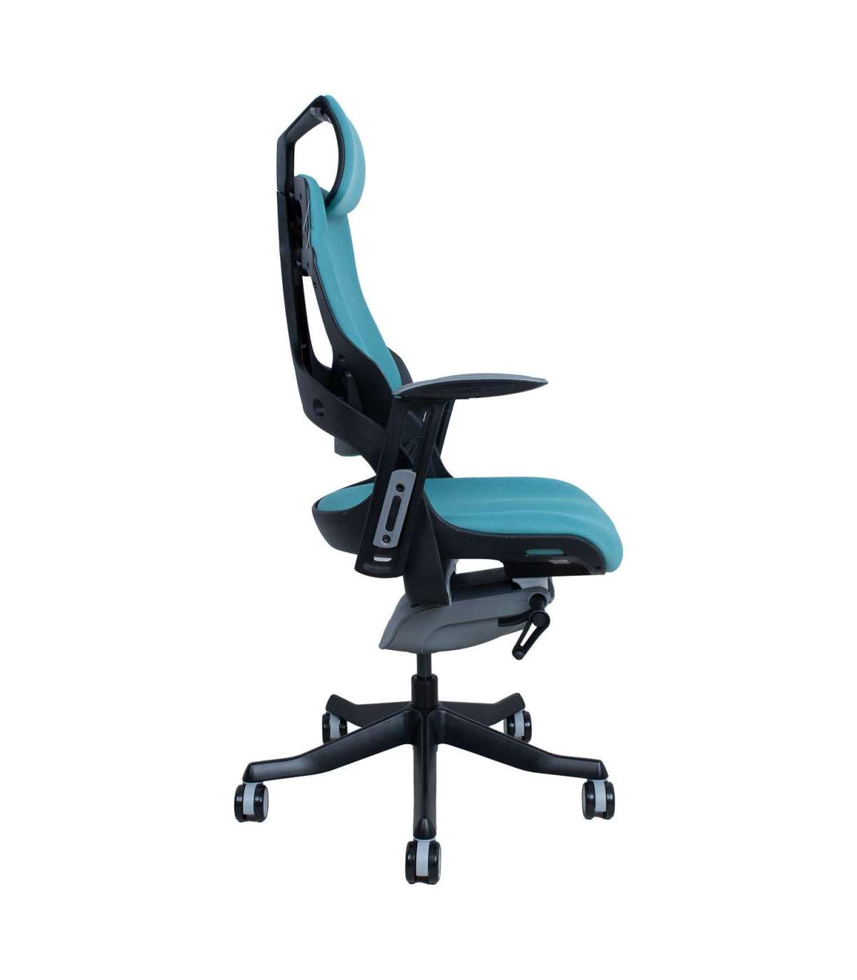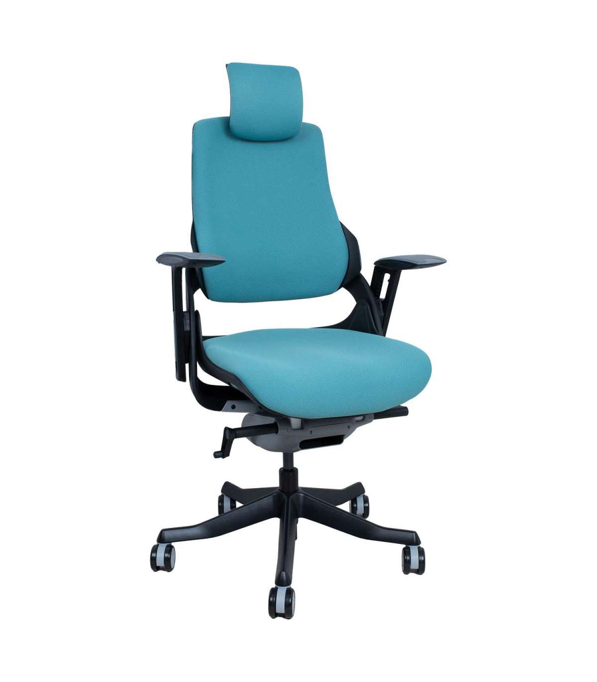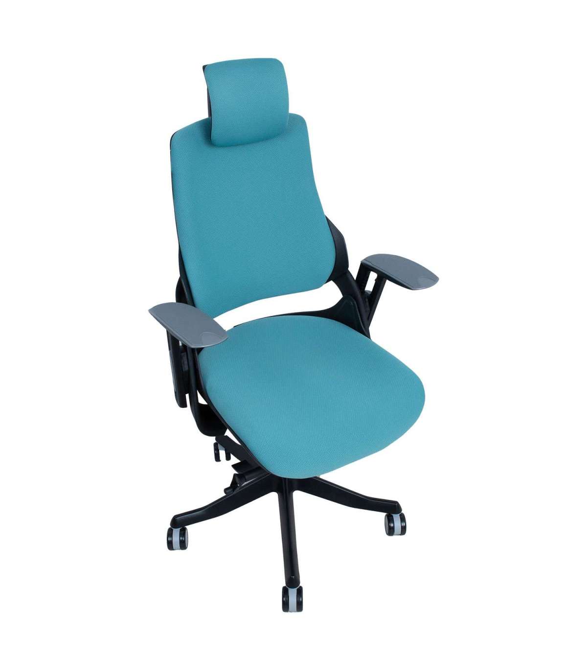 Töötool WAU sinakasroheline. WAU toolis on ühendatud suurepärane ergonoomika ja sportlik stiil, pakkudes parimat tuge ja rahulolu terveks tööpäevaks. Tooli väliskorpus on valmistatud mustast plastikust ja raami sisemised osad on vormitud hallist plastikust (100% PP taaskasutatav). Seljatoe plastikraam on tugevdatud fiiberkiuga. Tooli polsterdatud iste ja seljatugi on kaetud sinakasrohelise polüesterkangaga, Martindale’i väärtus 50 000. Toolil on sünkroonmehhanism. Seljatoe kaldenurk on lukustatav ja kaldepinge tugevus reguleeritav. Istme kõrgus on reguleeritav gaasamordi abil. Pea- ja seljatoe kõrgus on reguleeritav. Toolil on reguleeritav nimmetugi. Käetugede katted on valmistatud hallist elastomeer termoplastikust. Käetugede kõrgus ja pöördenurk on reguleeritavad. Tooli 5-haruline jalarist on valmistatud valualumiiniumist ja viimistletud musta epoksiidpulbervärviga. Toolil on 60mm põrandat säästvad nailonrattad. Tooli üldmõõdud on 70x70xH112-129cm. Istme laius 47cm, istme sügavus 49cm, istme kõrgus 40-48cm. Kaalupiirang 120kg.