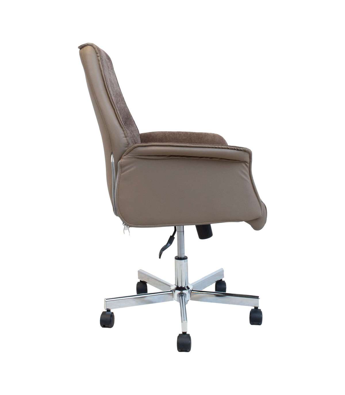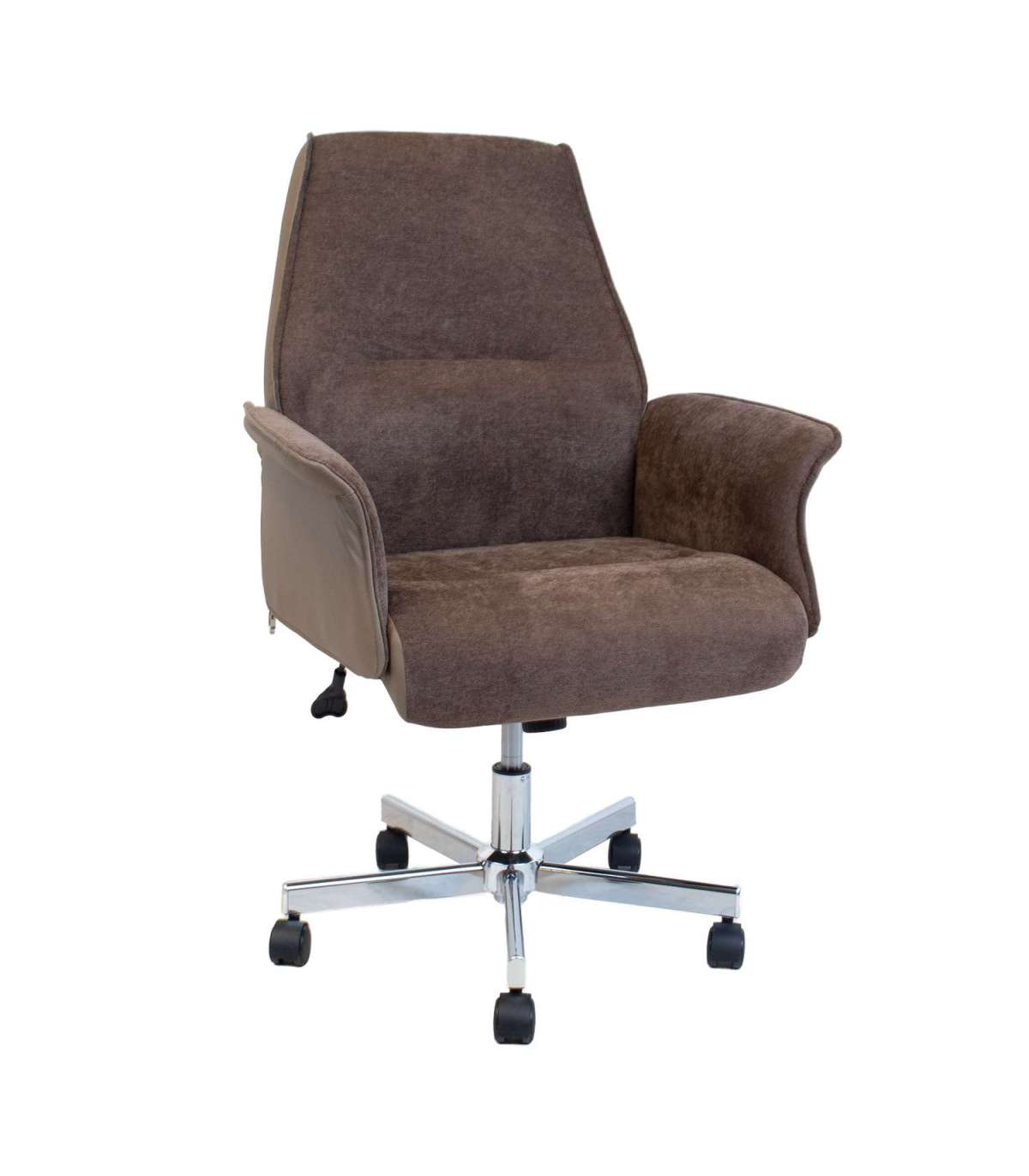 Töötool CADY pruun. Tooli iste ja käetoed on kergelt polsterdatud ja kaetud polüesterkanga. Tooli väliskülg on kaetud kunstnahaga. Toolil on lukustatav kiikemehhanism. Istme kõrgus on reguleeritav gaasamordi abil. Toolil on 5-haruline kroomitud jalarist ja plastikrattad. Tooli üldmõõdud on 68x63xH92-101cm. Istme laius 46cm, istme sügavus 48cm, istme kõrgus 41-50cm. Kaalupiirang 100kg.