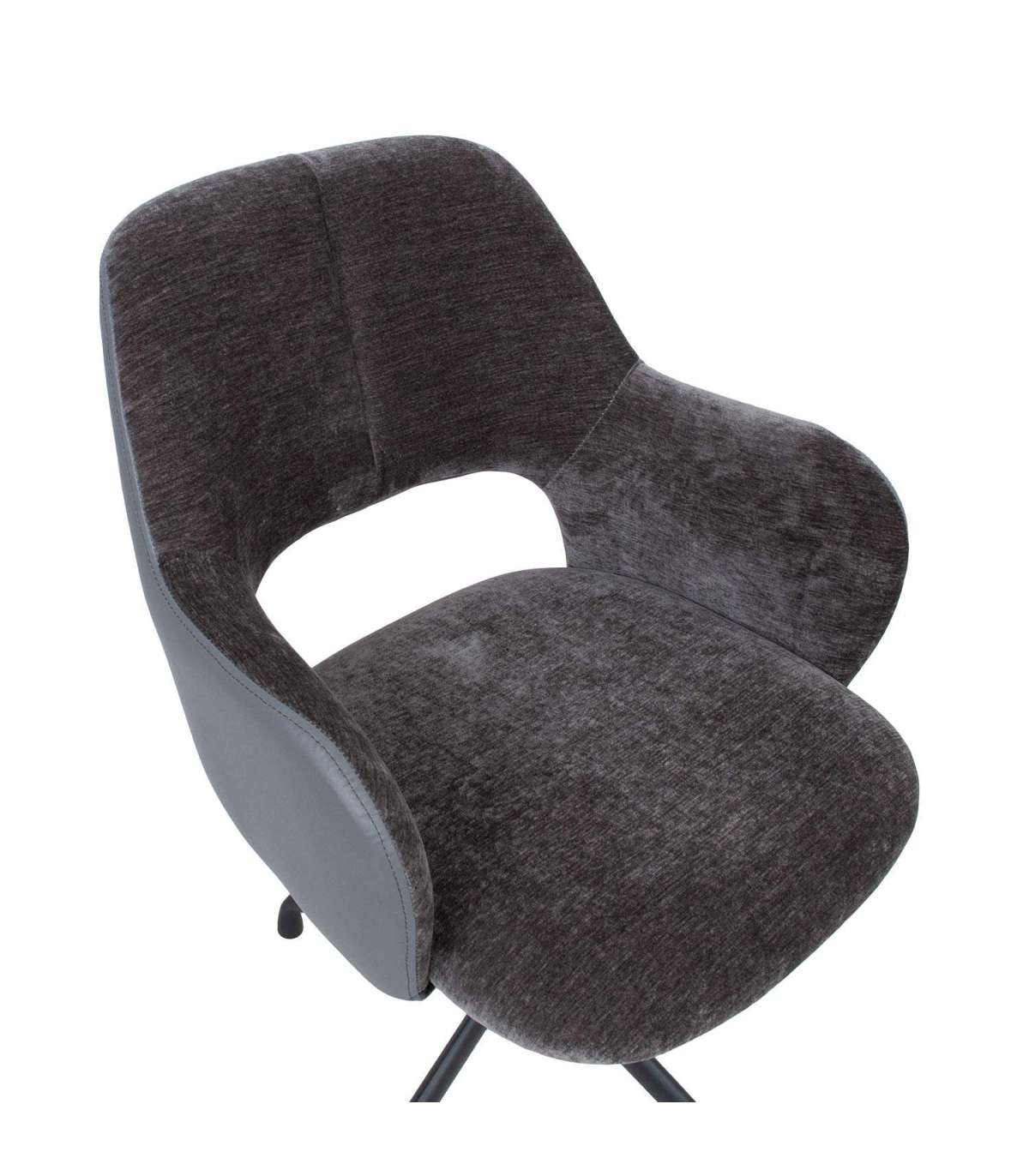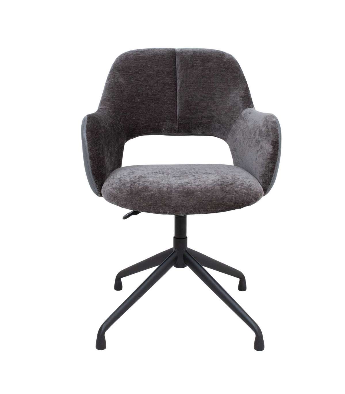 Töötool KENO ilma ratasteta 57x62xH82-88cm, hall. Tooli iste ja seljatugi on kergelt polsterdatud ja kaetud halli sametise polüesterkangaga. Seljatoe väliskülg on kaetud halli kunstnahaga. Tooli istme kõrgus on reguleeritav gaasamordi abil. Tooli neljaharuline metallist jalg on viimistletud musta pulbervärviga.
