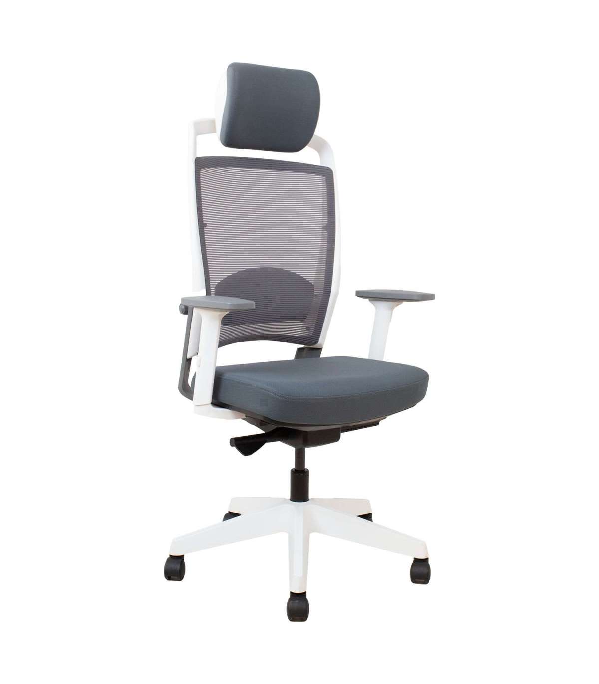 Töötool FULKRUM hall, valge raamiga. FULKRUM on loodud kestma ning võimaldab olla keskendunud ja tõhus terve pika tööpäeva. Elastne võrkkangast seljatugi on mugav ja laseb hästi õhku läbi. Reguleeritav nimmetugi tagab vajaliku toe alaseljale. Peatoe kõrgus on reguleeritav 5cm ulatuses. Seljatoe raam ja käetoed on valmistatud valgest plastikust, raami alumine osa ja käetugede nurgaga osa on tugevdatud fiiberkiuga. Tooli polsterdatud iste ja peatugi on kaetud halli polüesterkangaga, Martindale’i väärtus 50 000. Istmesügavus on reguleeritav. Kaalutundlik sünkroonmehhanism korrigeerib kiike jäikuse automaatselt vastavalt istuja kaalule. Seljatoe kaldenurk on lukustatav valitud positsioonis. Istme kõrgus on reguleeritav gaasamordi abil. Käetugede kõrgus, sügavus ja pöördenurk on reguleeritavad. Tooli 5-haruline jalarist on vormitud mustast fiiberkiuga tugevdatud nailonist. Toolil on plastikrattad, 50mm. Tooli üldmõõdud on 70x70xH114-129cm, istme kõrgus 41-51cm, istme sügavus 41-48cm, istme laius 48cm. Kaalupiirang 120kg.