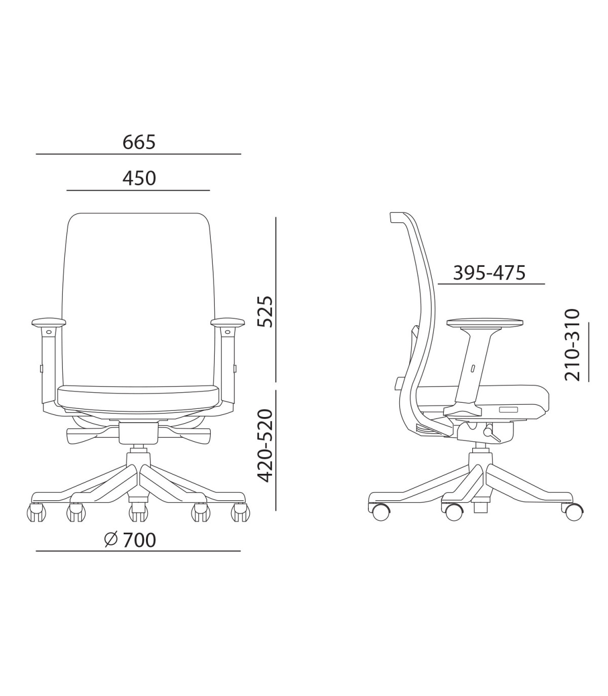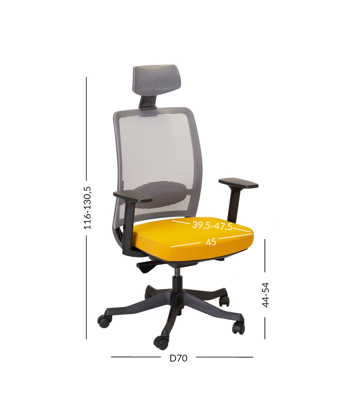 Tooli kõrgus on 116-130,5cm, seljatoe kõrgus 52,5cm (koos peatoega 72-76,5cm), istme kõrgus 44-54cm, istme sügavus 39,5-47,5cm, istme laius 45cm.