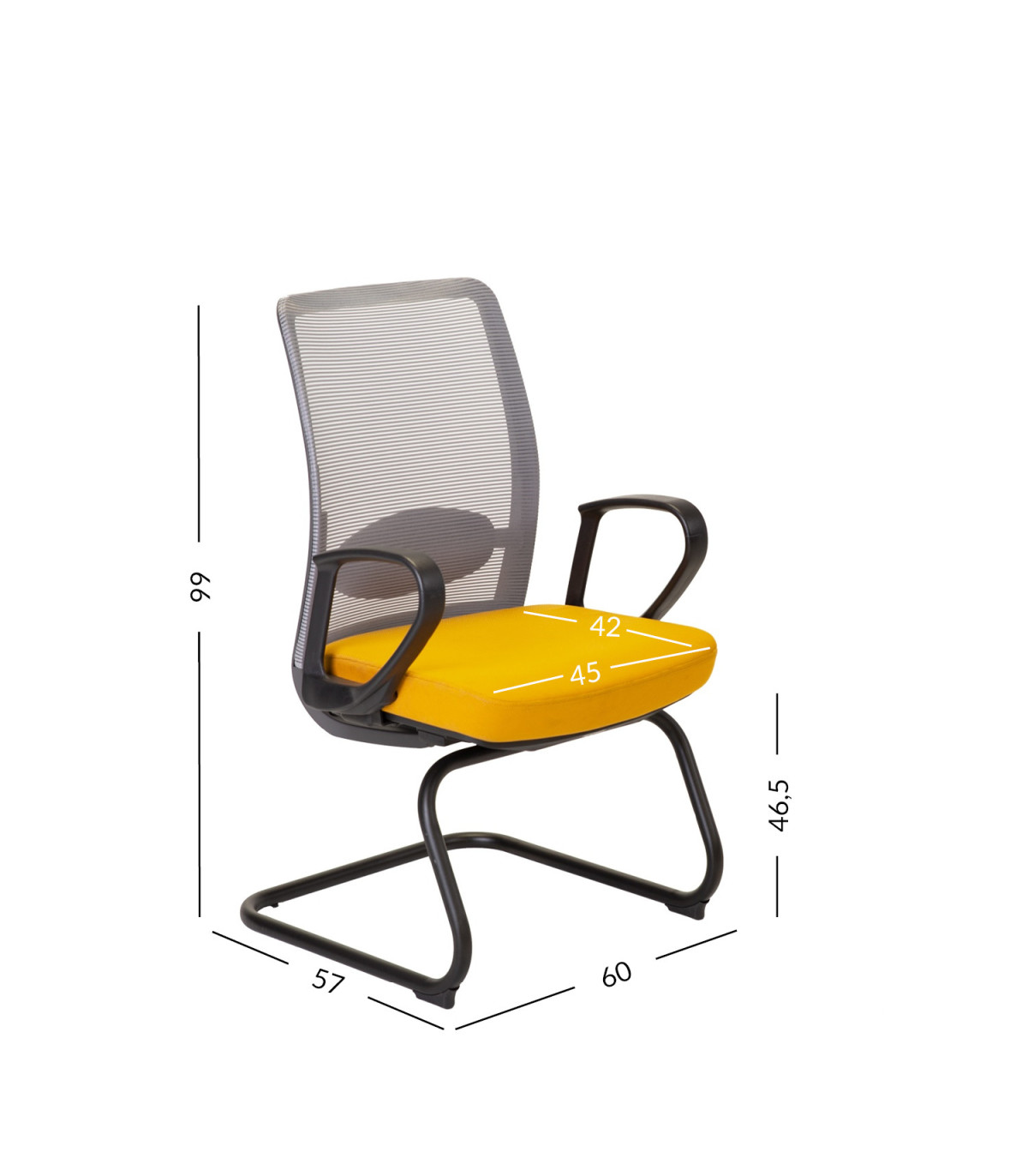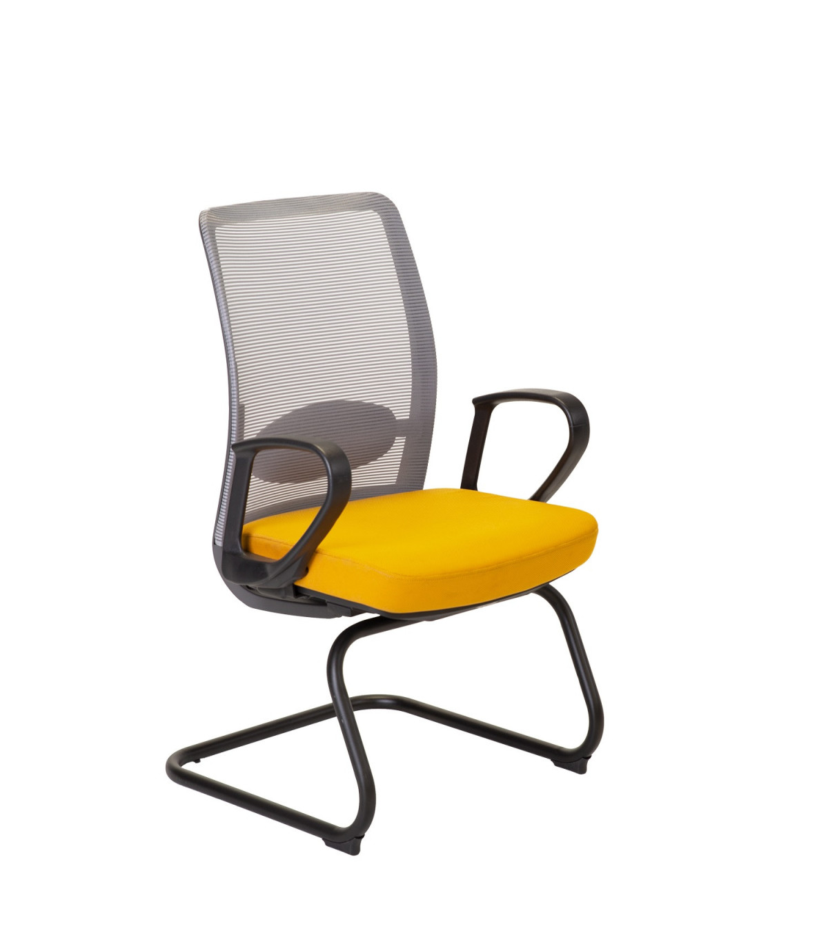 Klienditool ANGGUN, kollane/hall. Iste on kaetud polüesterkangaga, 50 000 Martindale’i. Seljatugi on kaetud polüestervõrkkangaga. Reguleeritav nimmetugi. Mustad plastikust käetoed. Tooli alusraam on valmistatud musta värvi metallist. Tooli üldmõõdud on 60x57xH99cm. Kaalupiirang 100kg.