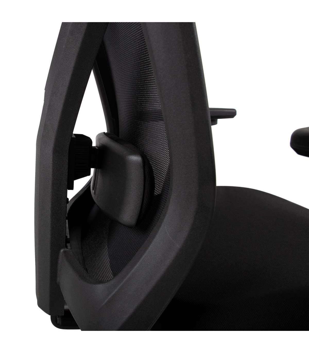 Ergonoomilise disainiga seljatoeraam on valmistatud mustast plastikust.