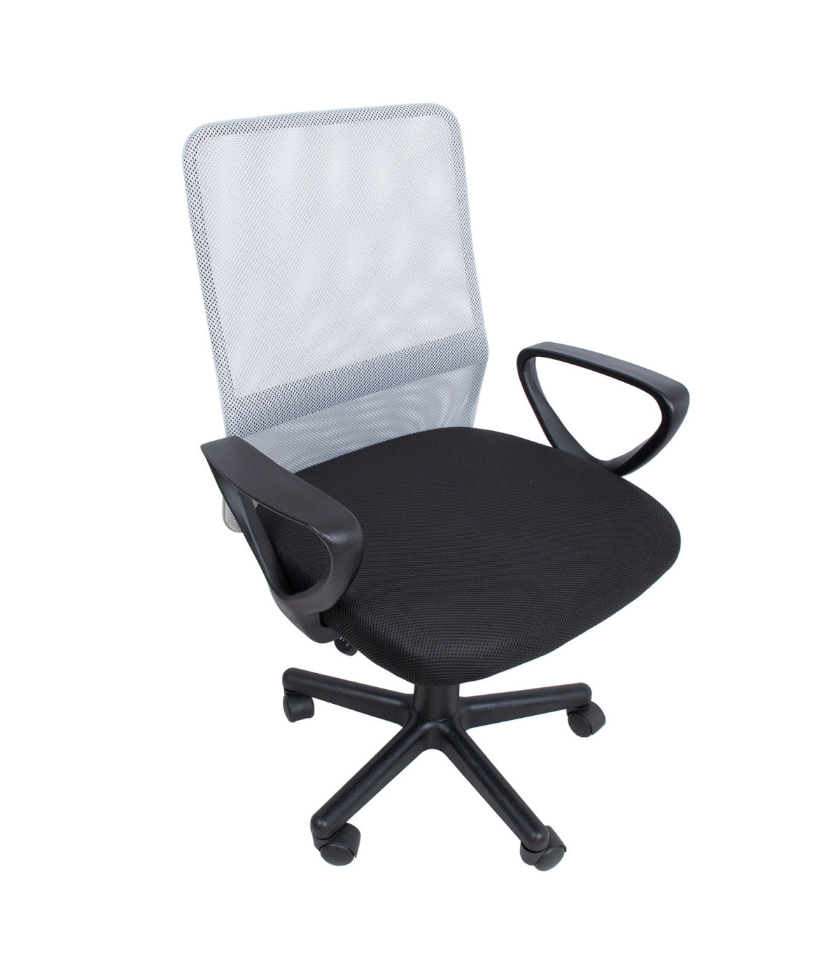Töötool BELINDA must/hall. Kergelt polsterdatud tooli iste on kaetud polüesterkangaga. Seljatugi on kaetud polüestervõrkkangaga. Istme kõrgus on reguleeritav gaasamordi abil. Käetoed on mustast plastikust. 5-haruline jalarist on mustast plastikust, R27cm. Toolil on plastikrattad, 50mm. Tooli kõrgus on 86,5-98,5cm, istme laius 46,5cm, istme sügavus 46,5cm, seljatoe laius 44cm, seljatoe kõrgus 55,5cm. Toote mõõdud on 59x56xH86,5-98,5cm. Tooli kaalupiirang on 80kg.