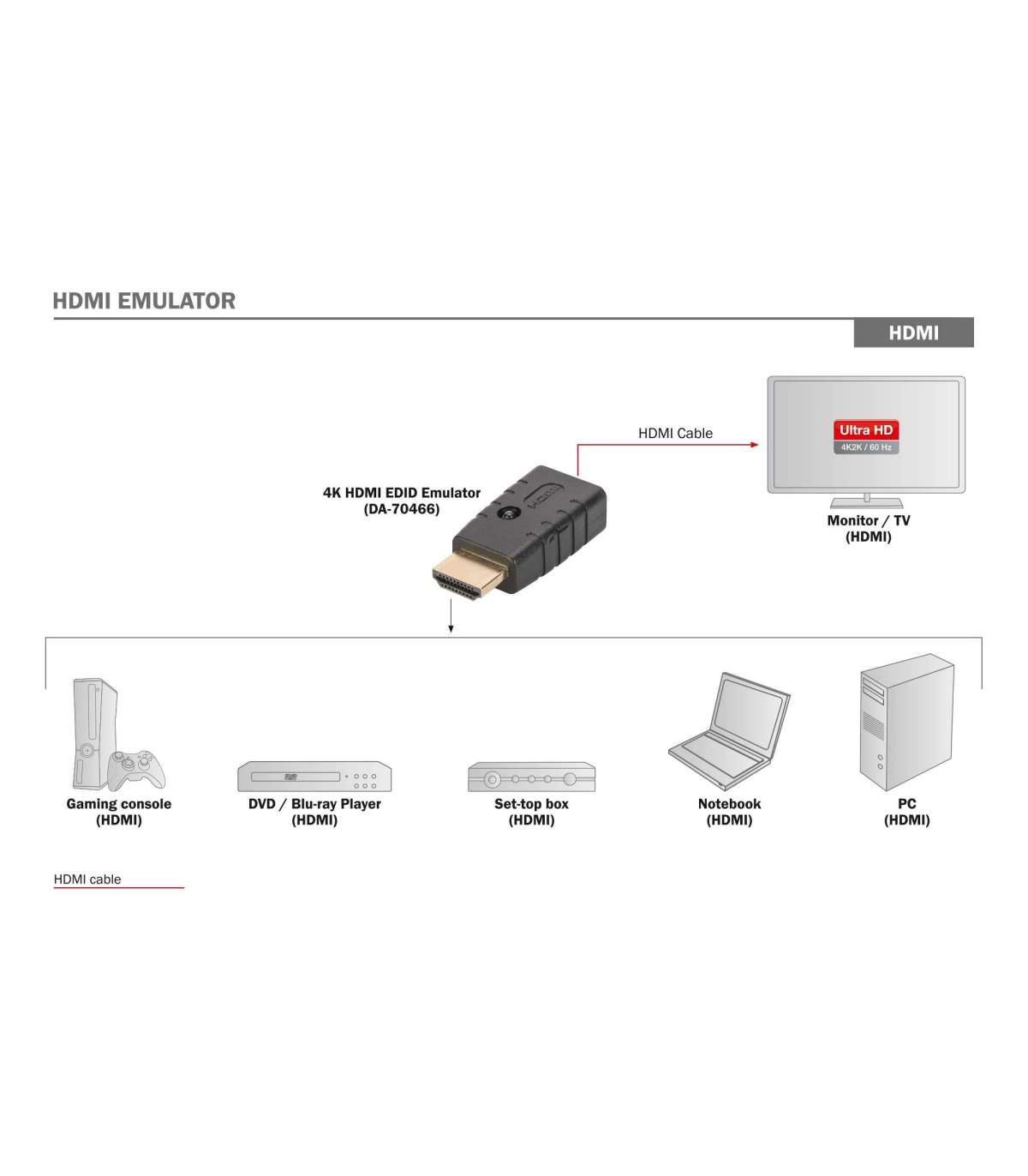 Digitus | HDMI EDID Emulator For Extender, Switches, Splitter, Matrix Switcher | DA-70466 | HDMI output | HDMI input | HDMI in to HDMI out