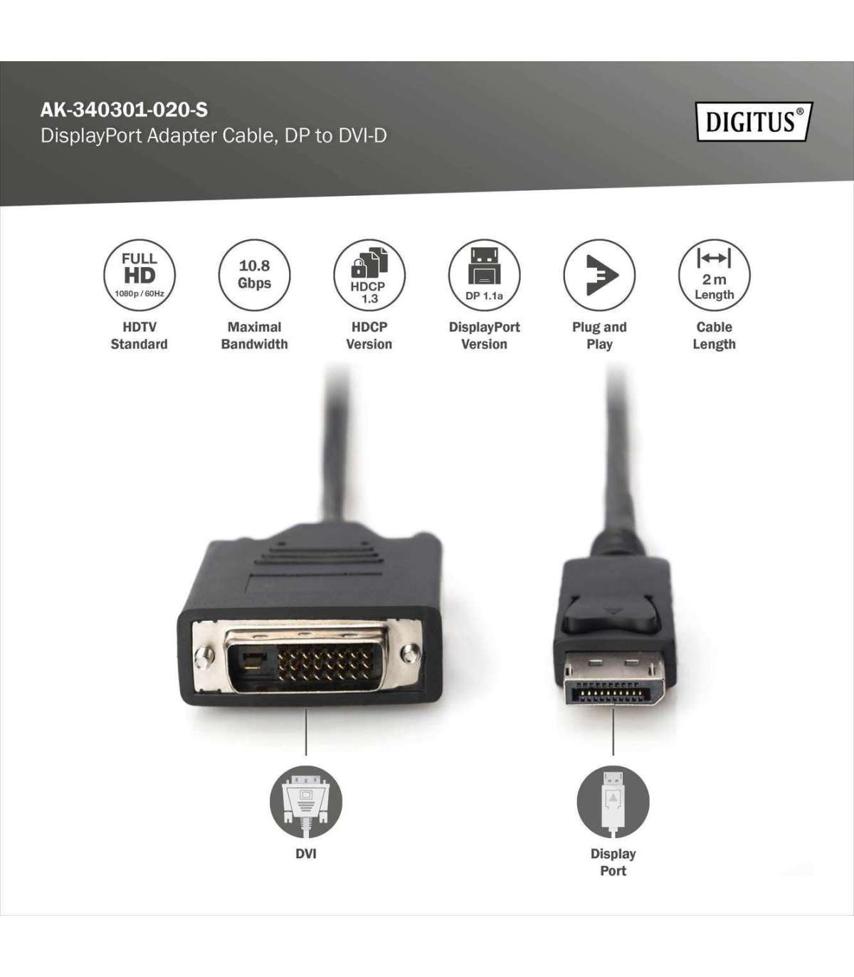 Digitus Adapter Cable, DP - DVI DisplayPort 2 m