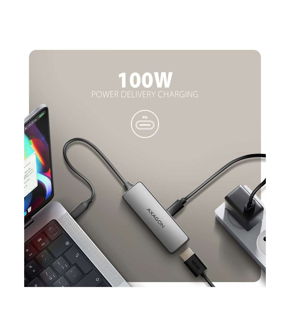 AXAGON Active converter RVC-HI8KPD, 100 W USB Type-C to HDMI