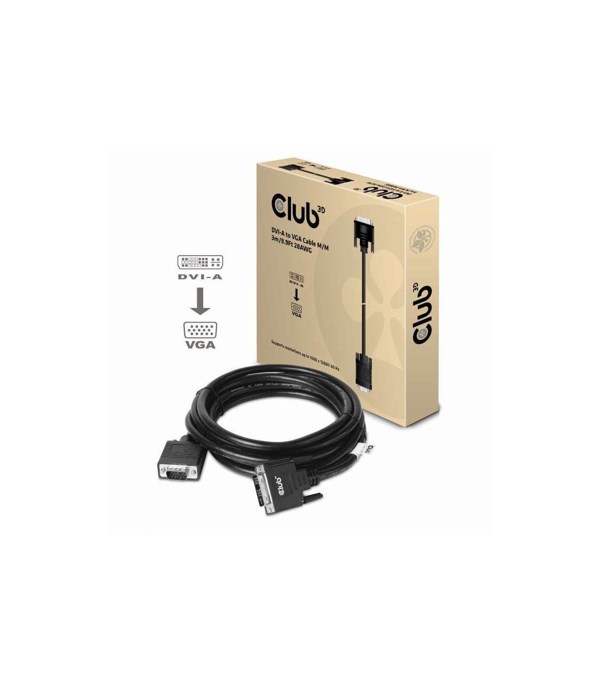 CABLE DVI-A TO VGA 3M/M/M CAC-1243 CLUB3D