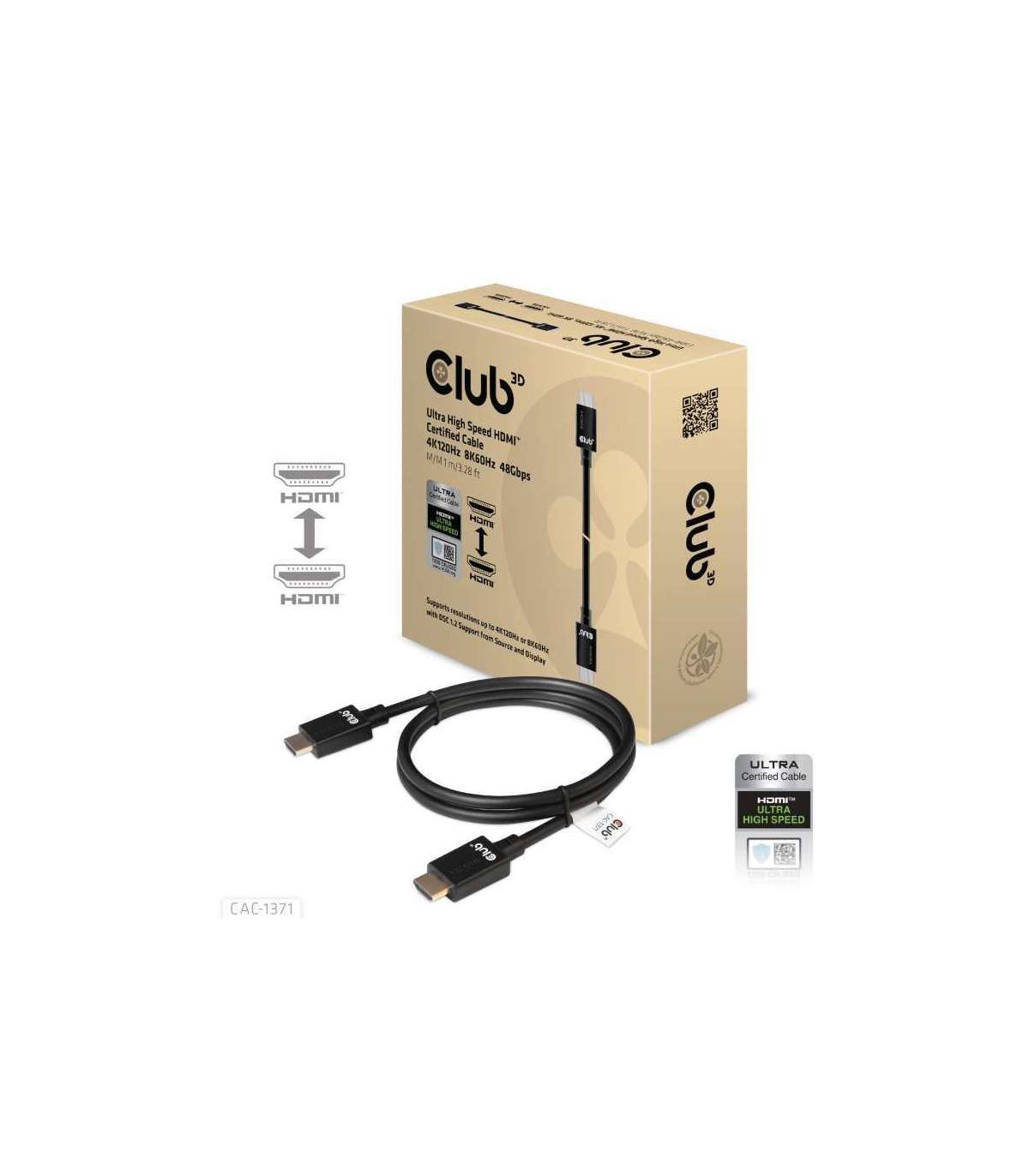 CABLE HDMI TO HDMI 1M/M/M CAC-1371 CLUB3D