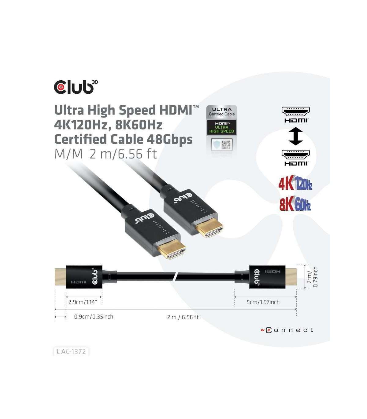CABLE HDMI TO HDMI 2M/M/M CAC-1372 CLUB3D