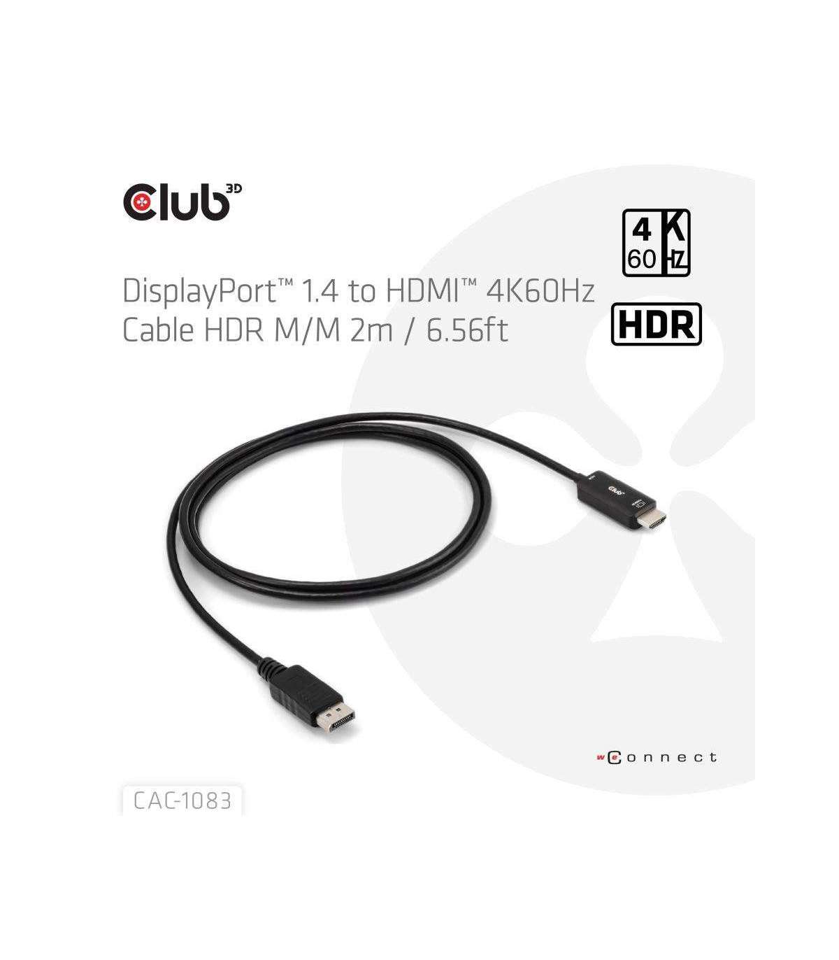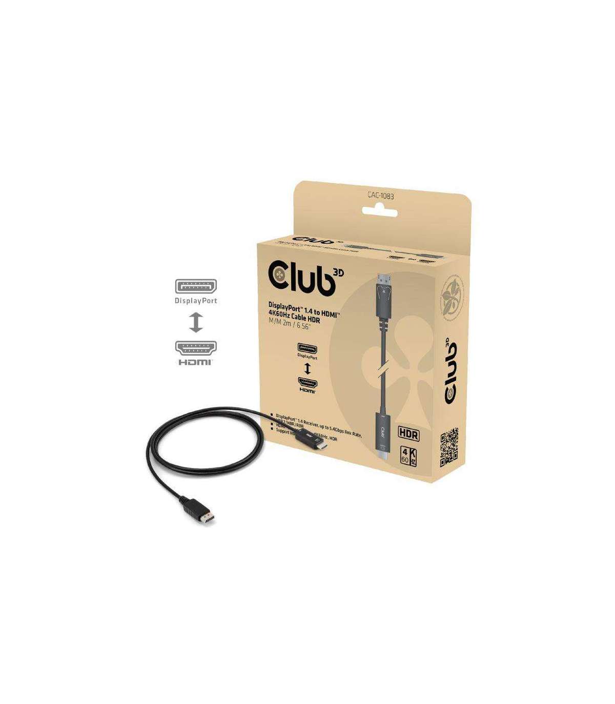The Club 3D CAC-1083 is a DisplayPort™ 1.4 to HDMI™ 4K60Hz Cable with HDR M/M 2m / 6.56ft converter. It features support for HDR Video quality deep color media content playback. The DisplayPort™ receiver supports up to 5,4 Gbps per lane over 4 lanes. The HDMI™ output is fully compliant to HDMI™ specification.