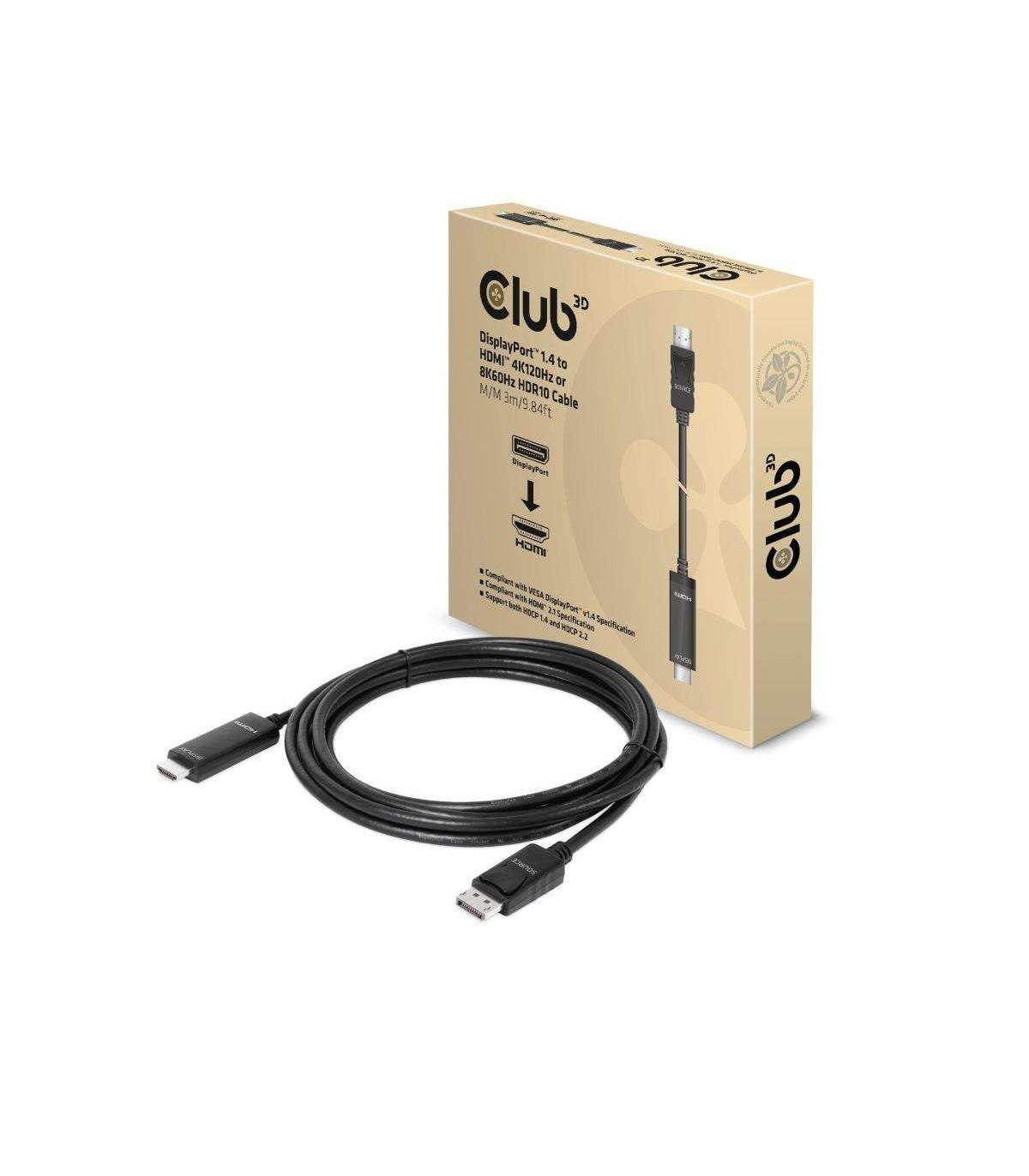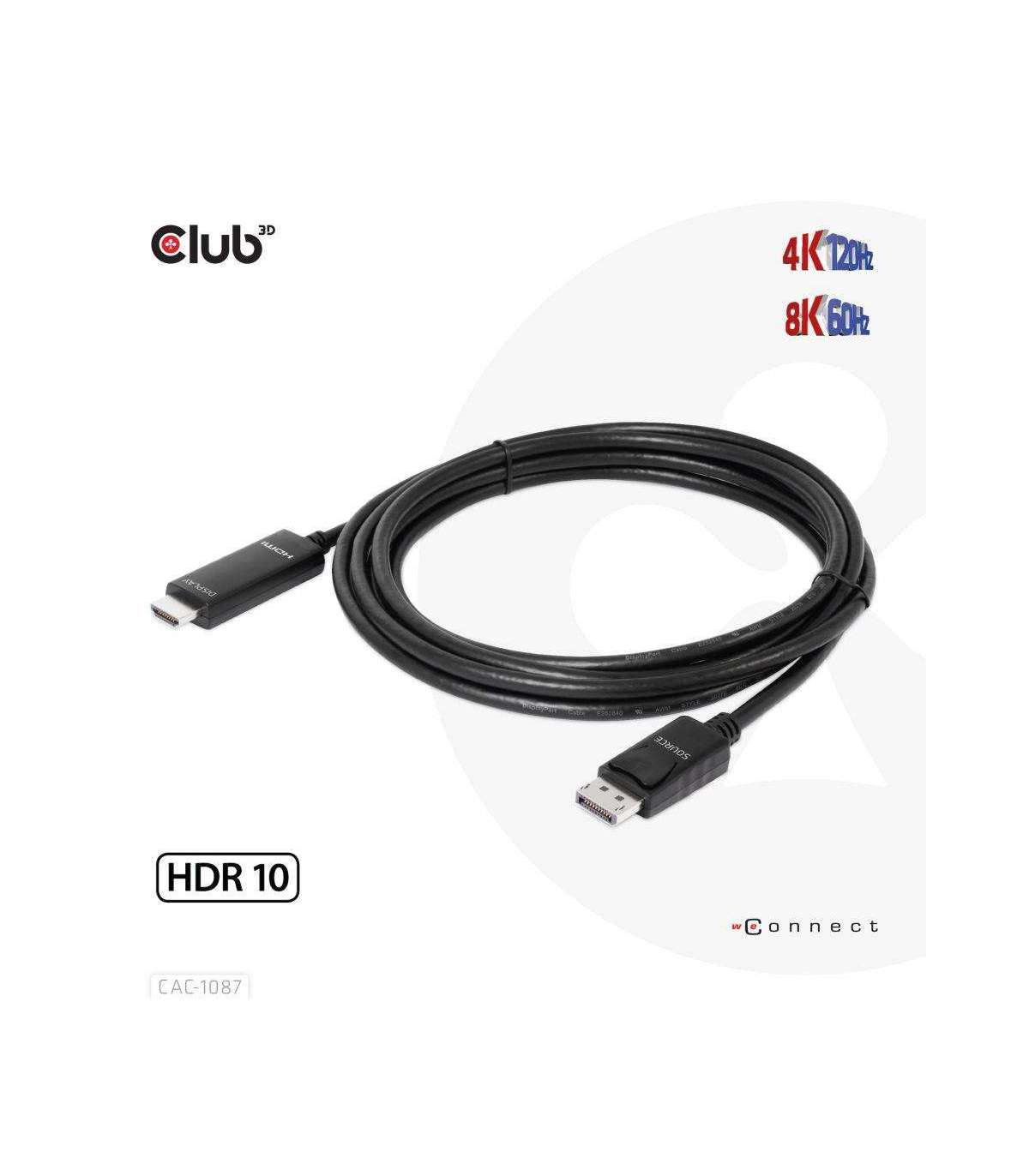 CABLE DP TO HDMI 3M/M/M CAC-1087 CLUB3D