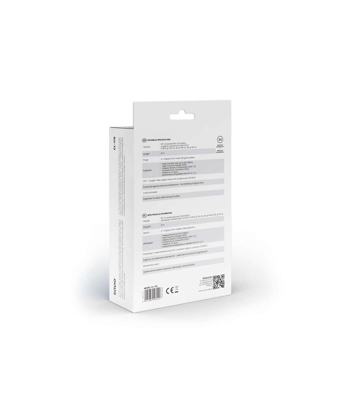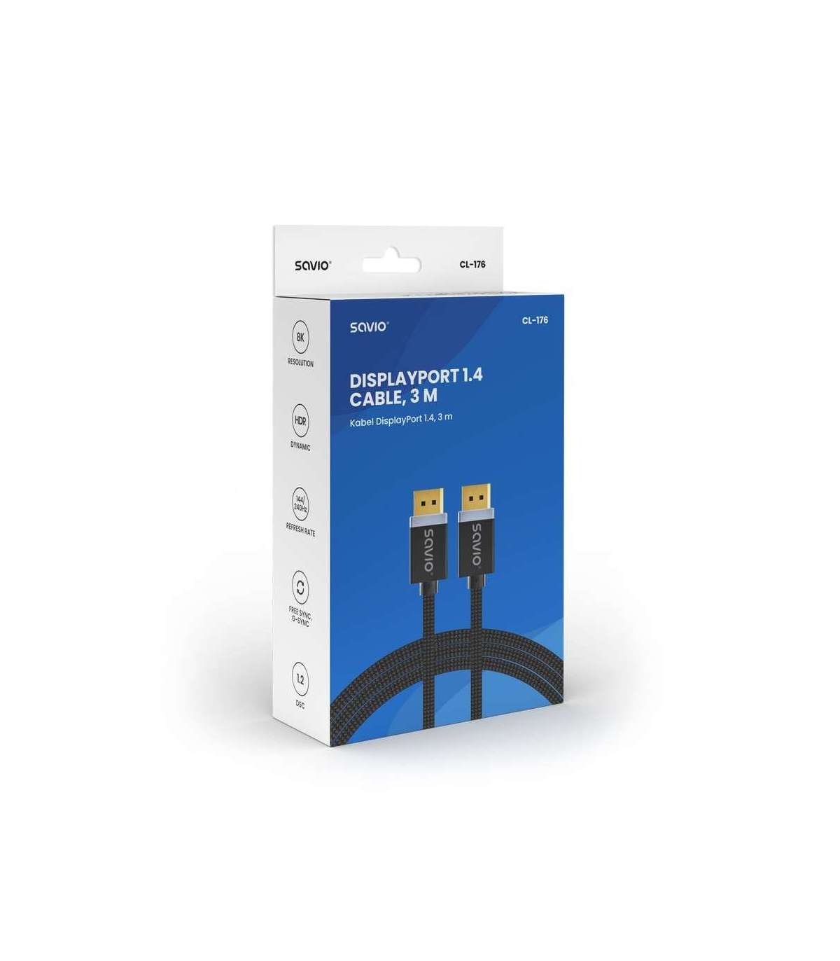 SAVIO DISPLAYPORT (M) - DISPLAYPORT (M) CABLE, V1.4, 3 m, CL-176