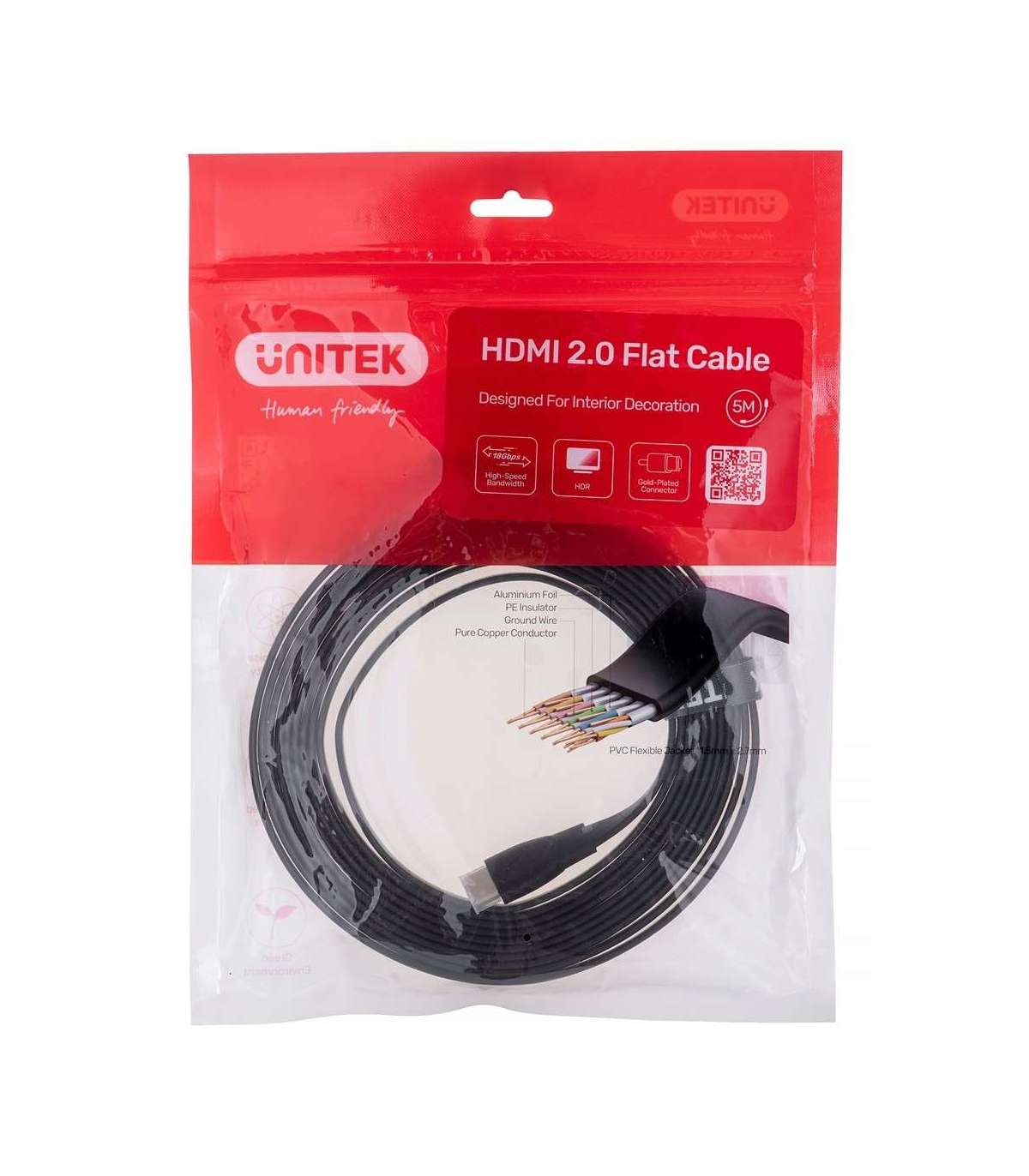UNITEK 2.0 4K60HZ FLAT 5M C11063BK-5M - Kabel - Digital/Display/Video HDMI cable 5 m HDMI Type A (Standard) Black