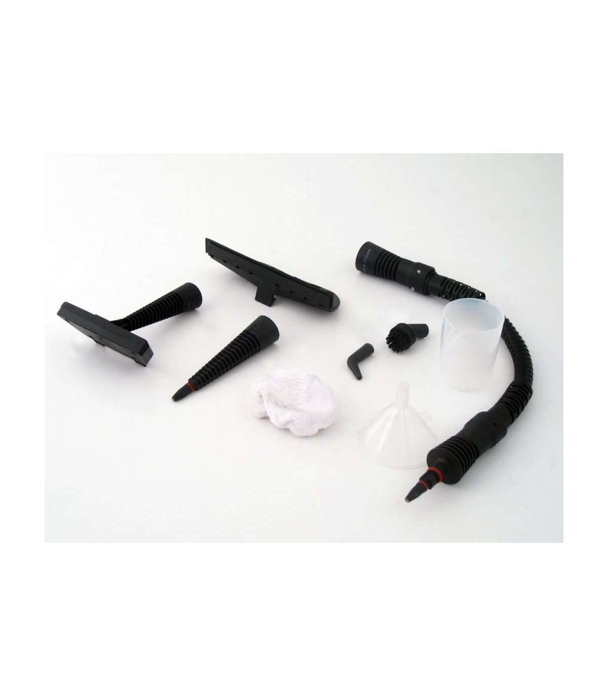 Komplektis: üldkasutatav tarvik, klaasi ja akende tarvik, painduv pikendus, pihustiotsik, nurga all olev tila, ümmargune hari, riidelapp, lehter ja jaotur.