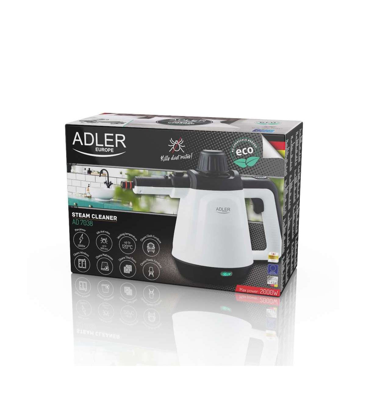 Adler | Steam cleaner | AD 7038 | Power 1200 W | Steam pressure 3.5 bar | Water tank capacity 0.45 L | White/Black