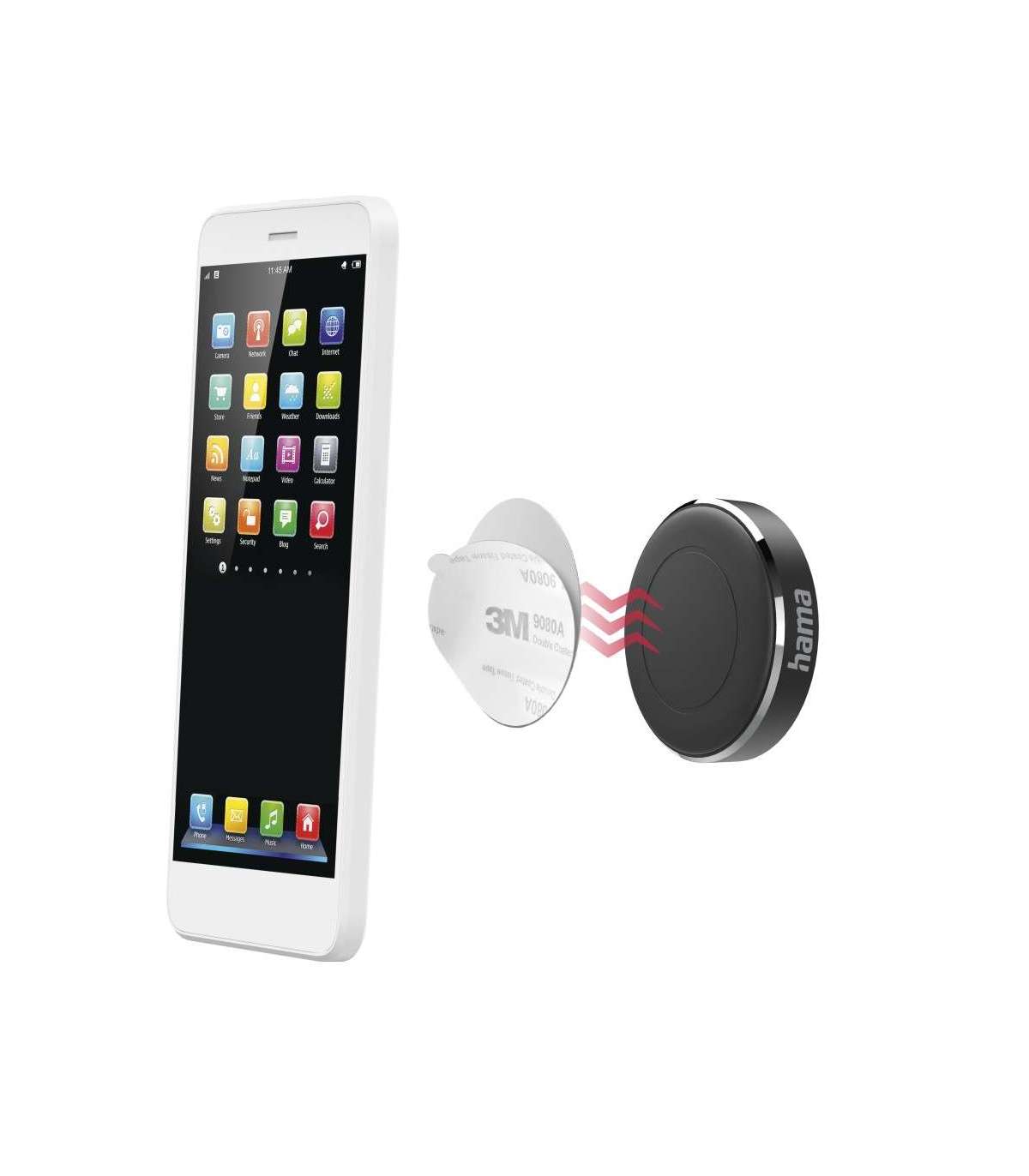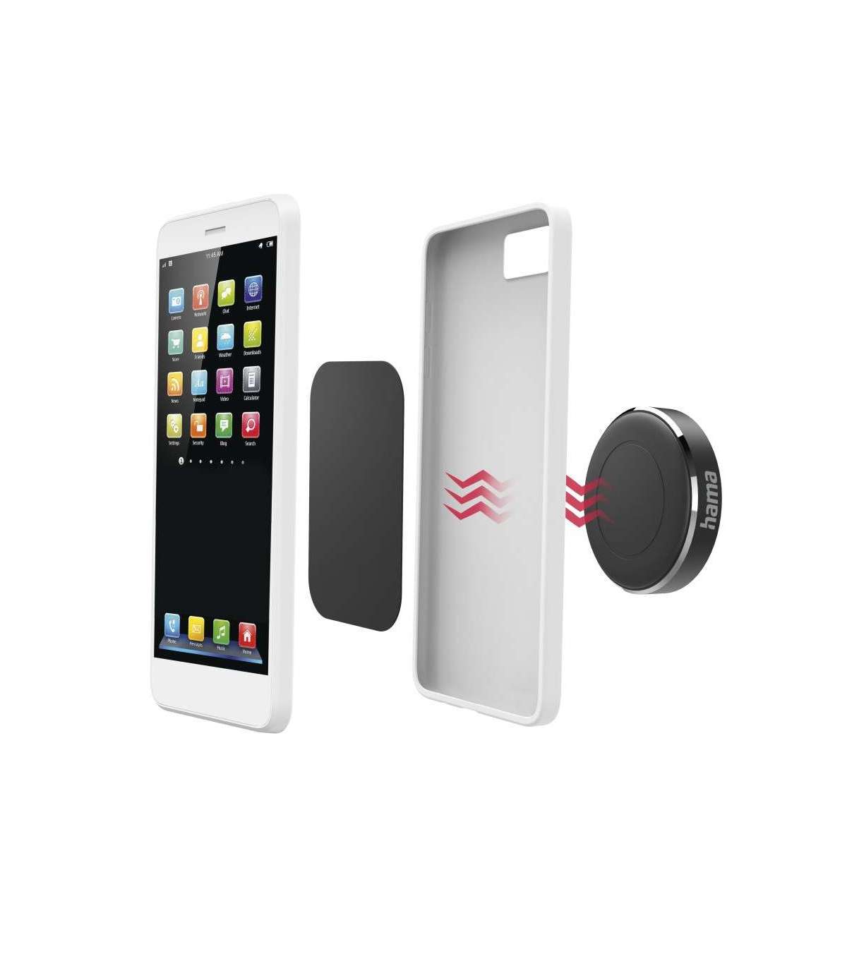 Kaasas kaks metallplaati (ümmargune ja ristkülikukujuline) kaitseümbrisesse sisestamiseks või nutitelefoni tagaküljele kleepimiseks (3M kleeplindiga)