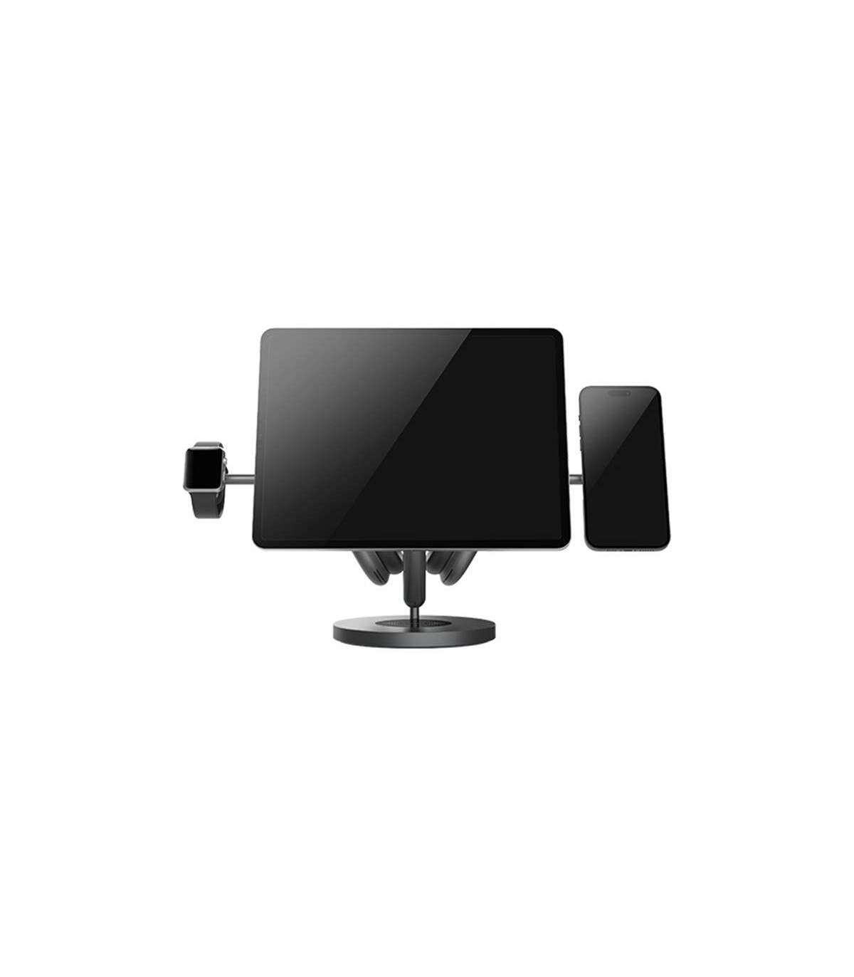 The Nillkin SnapBranch Modular all-in-one holder is a versatile stand that organizes and integrates all your mobile devices in one place. Designed for tablets, smartphones, watches and headphones, it offers a practical solution for organizing your workspace. Its minimalist gray design fits perfectly into any desk while providing full functionality. The set includes various modules that allow easy integration of different devices, increasing the convenience of daily use.