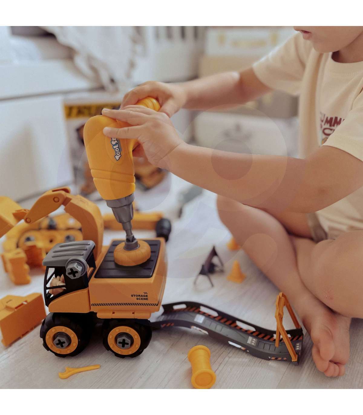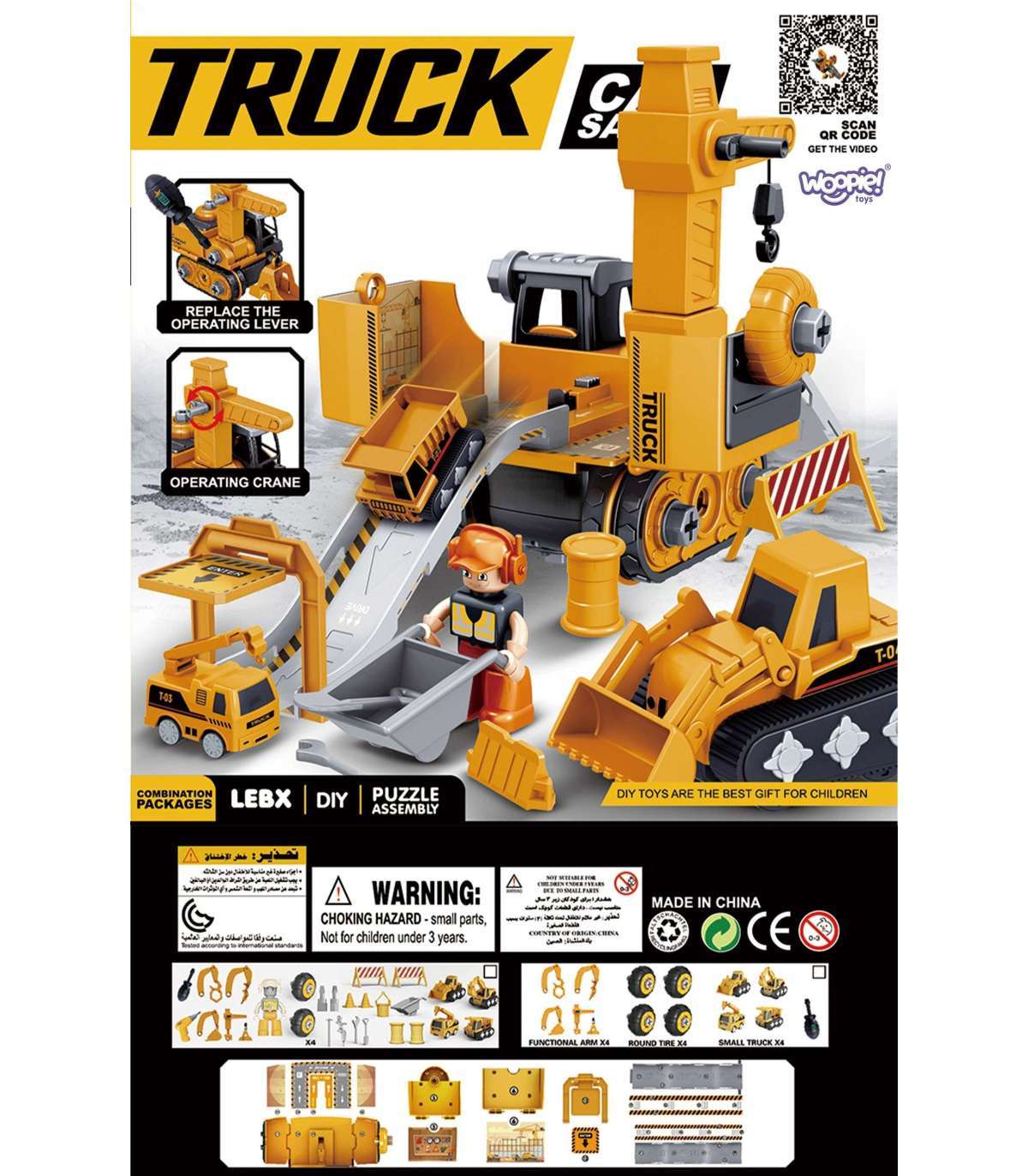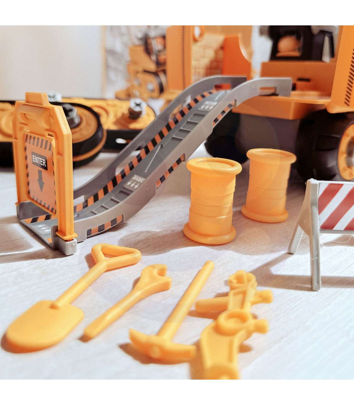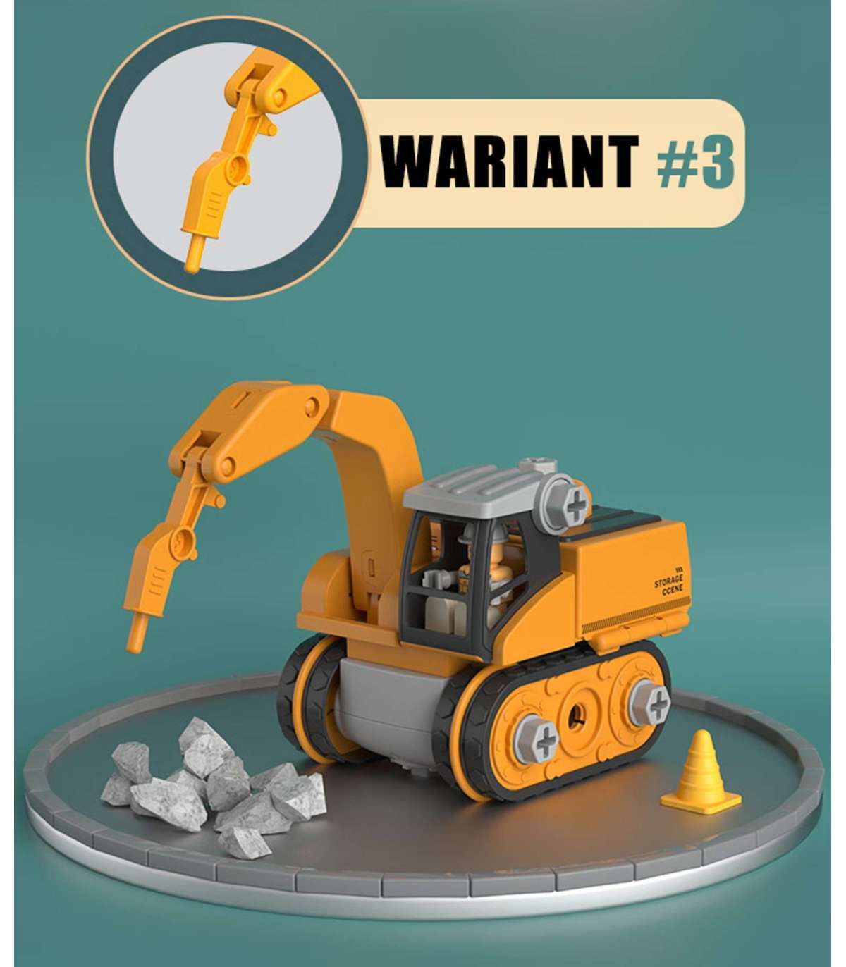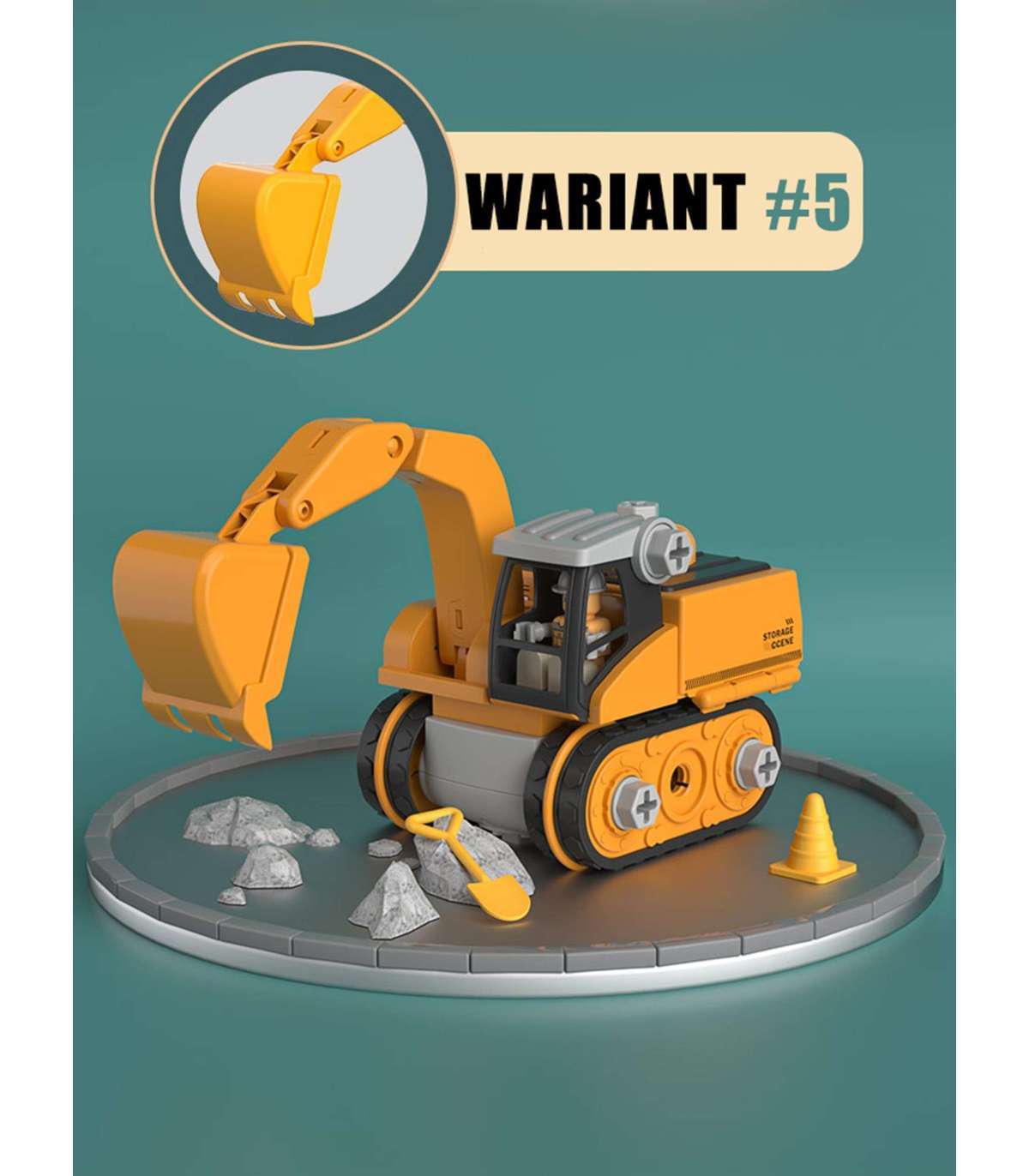 Mega ehitusplats 5-ühes brändilt WOOPIE on täielik komplekt iga ekstreemsete sõidukite austaja jaoks! Mäng seisneb ühe 5 sõidukitüübi kokkupanemises puur- või kruvikeerajaga ning ehitusmängus paljude tarvikutega, sh ehitaja figuur, 4 mini sõidukit või praht. Komplekt on viimistletud väikseimate detailideni ning enamiku sõidukielementide konstruktsioon on liikuv, nt ekskavaatori katus. Režiimis "Ehitusplats rajaga" saab laps lansseerida ühe 4st mini sõidukist lansseerijast raja alguses. Mänguasi arendab peale loovuse ja kujutlusvõime ka lapse käelisi oskusi ehk "peenmotoorikat" tänu keeramise mängule. Komplektiga saab mängida igal pool, isegi liivakastis!