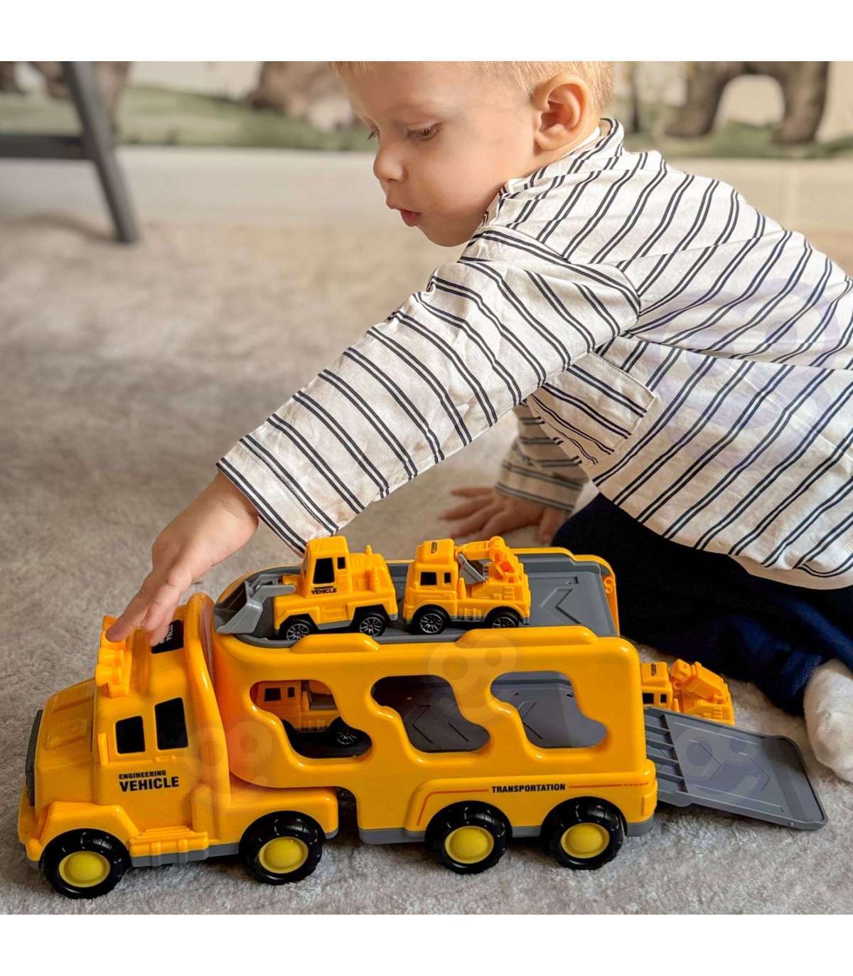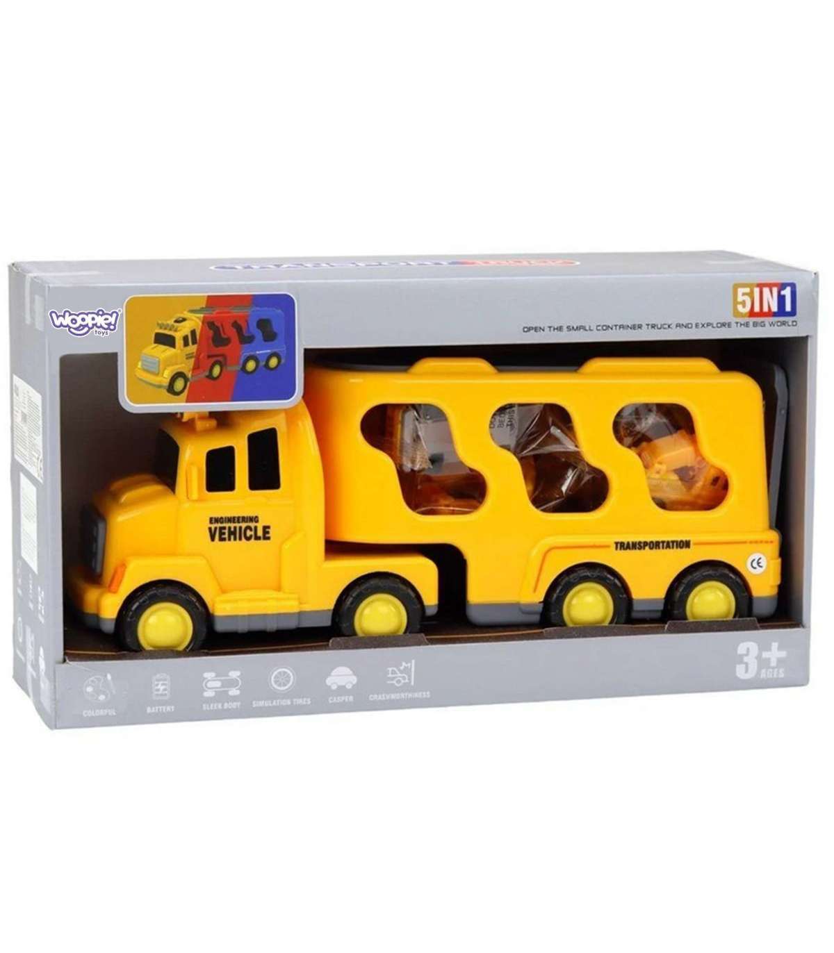 Autokomplekt "Teetugi" brändilt WOOPIE on mänguasi, mis rõõmustab väikseid autohuvilisi ja ehitusmasinate armastajaid. See pakub tunde põnevat mängu, mis ergutab teie lapse kujutlusvõimet. Komplekt sisaldab 5 autot: suur haagis/veok, mis pärast mängu võib toimida väiksemate autode hoiustamisena, ekskavaator, betoonisegaja, kraana, buldooser. Hõõrdajõuline jõuülekanne väiksemates ehitusautodes võimaldab lastel neid iseseisvalt liigutada, mis mitmekesistab mängu ja lisab mängule veelgi huvitavamaid funktsioone!