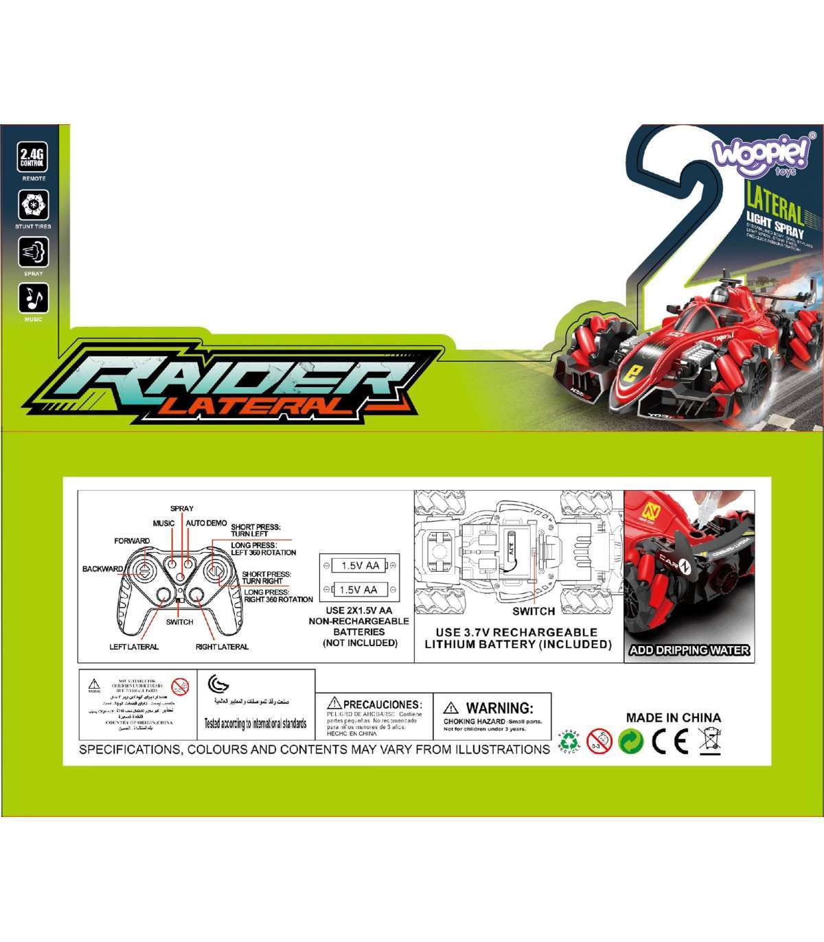 Juhtmevaba kaskadöörauto RAIDER brändilt WOOPIE on kaasaegne mänguasi, mis viib laste võidusõidud täiesti uuele tasemele! See erakordselt efektne puldiga juhitav mudel ei ole lihtsalt klassikaline põrandal sõitev auto — see on tõeline trikitark sõiduk, mis suudab pöörata külgsuunas ja isegi keerata 360°. Väikesesse, auto tagaosale paigaldatud paaki saab valada veidi vett, mille tulemusel hakkab väljalasketorust tulema vesiauru, mis imiteerib tõelisi heitgaase. Komplekti kuulub mugav juhtpult, millega sõidukit juhitakse ning käivitatakse heliefektid või valgustatud summuti. Selle sõiduki kasutamine on äärmiselt intuitiivne ja lihtne, võimaldades sul kiiresti hakata treenima driftioskusi. Mänguasi ei ole ainult suurepärase lõbu allikas — see on vahend õppimiseks, arenguks ja loovaks ajaveetmiseks. Selle auto abil laps mitte ainult ei treeni reflekse ja koordinatsiooni, vaid arendab ka kujutlusvõimet, planeerides oma võidusõiduradu ja luues rallistsenaariume. Ideaalne kingiidee igale väikesele autohuvilisele, kiiruse ja põnevate väljakutsete fännile.