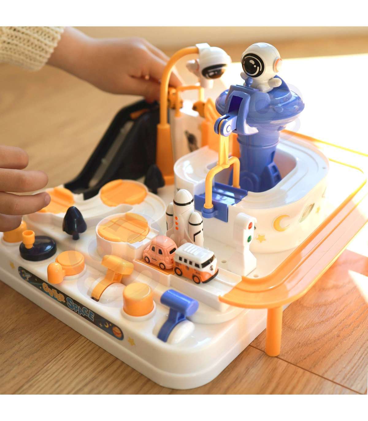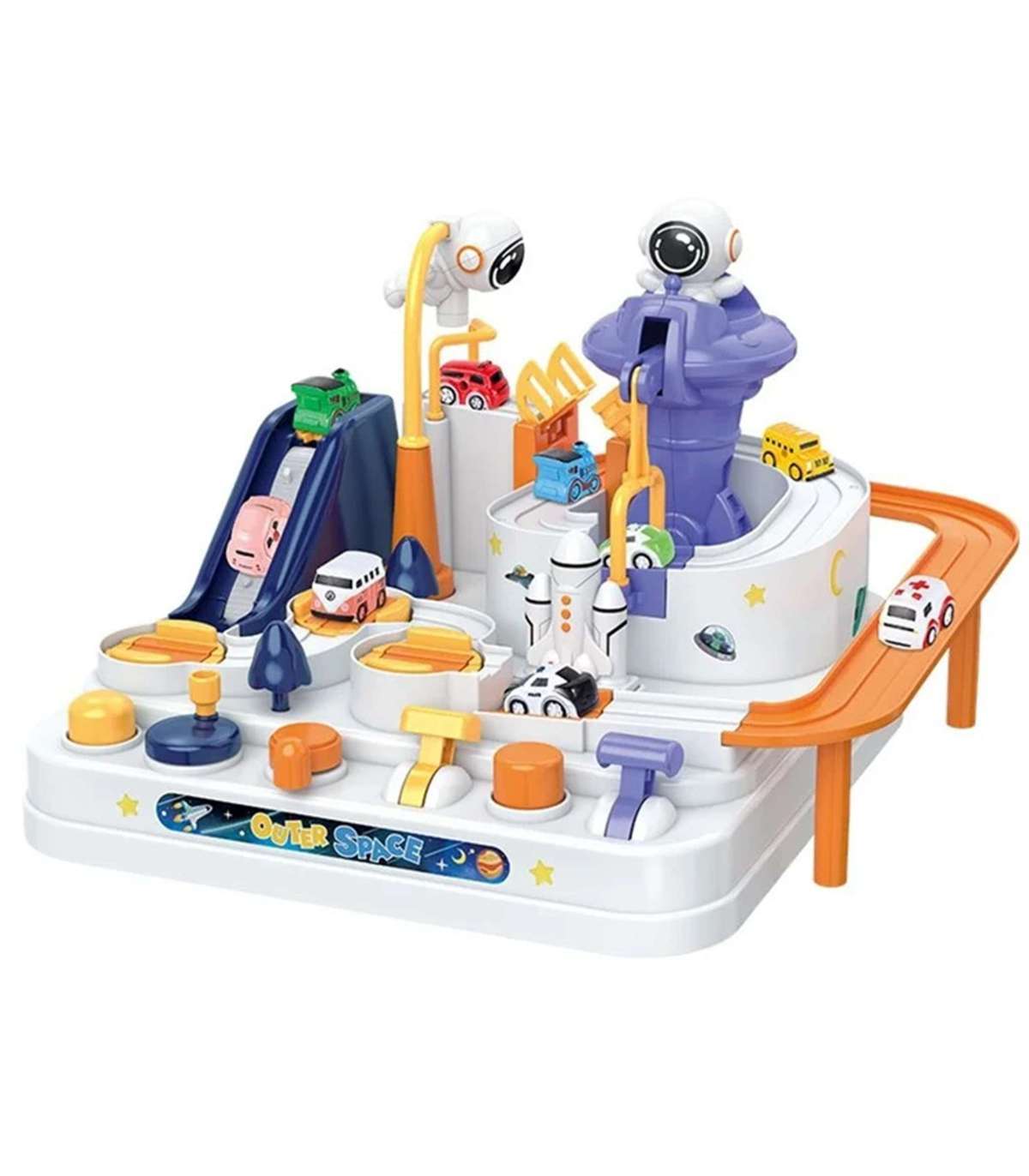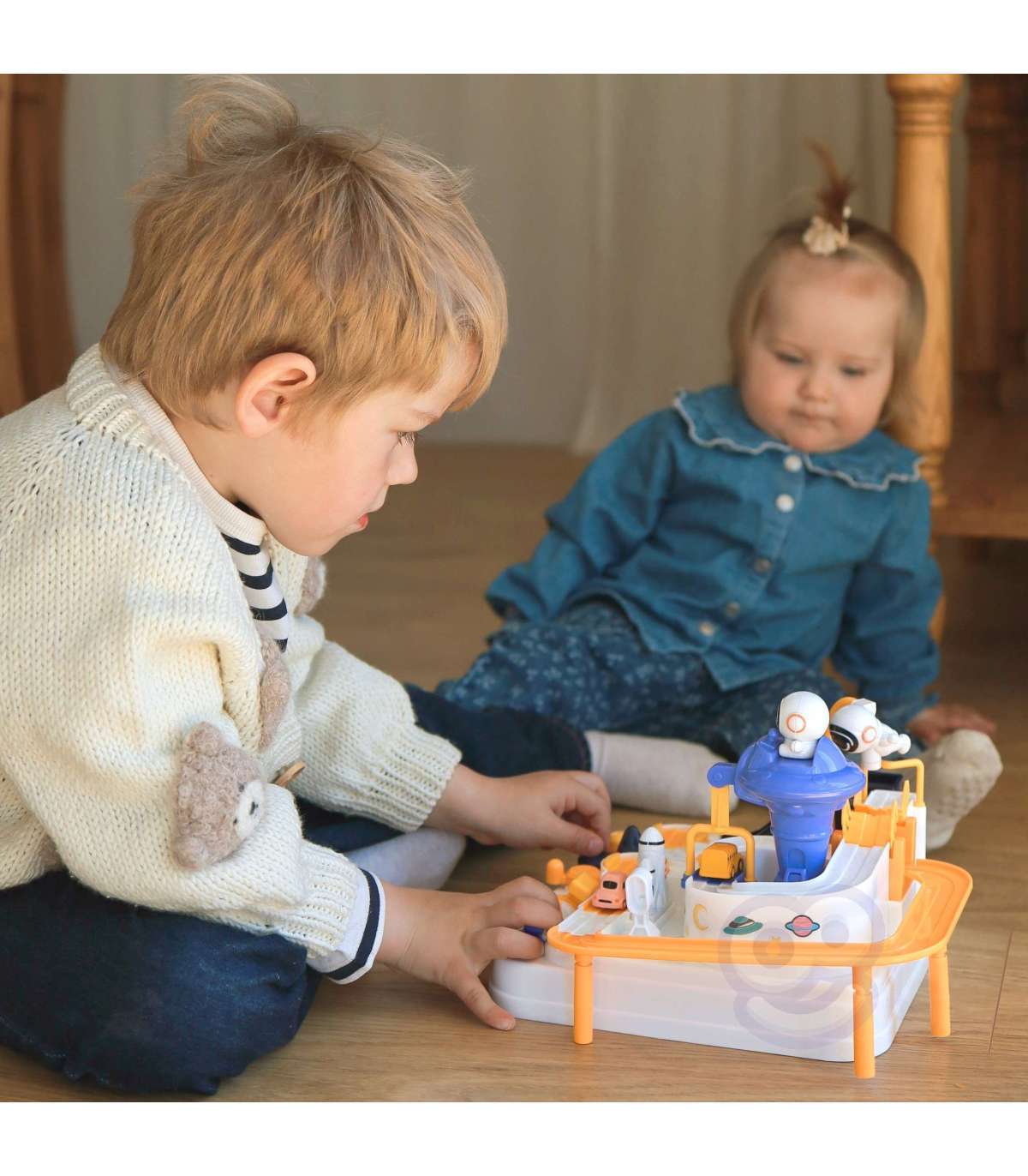 Interaktiivne takistusraja "Astronaudi seiklus" on erakordne kingitus väikestele avastajatele, kes ihaldavad põnevaid seiklusi ja unustamatuid väljakutseid. See on rohkem kui mänguasi — tõeline areen, kus lapsed saavad kehastuda juhtideks ja ületada erinevaid takistusi. Läbimõeldud ehituse ja mitmekesiste elementide tõttu pakub mänguasi unustamatuid hetki täis põnevust ja väljakutseid. See on ideaalne vahend kujutlusvõime ja käsitööoskuste arendamiseks, samal ajal pakkudes palju lõbu. Autode rada pakub mitte ainult sõiduvõimalust, vaid ka dünaamilisi, interaktiivseid elemente, mida juhitakse nuppude ja pöördnuppudega. See on põnev mäng, mis nõuab keskendumist ja osavust. Komplektis on kolm autot, mis võivad lapse kujutlusvõimest lähtudes rada vabalt avastada. Sõidukid mitmekesistavad mängu või võimaldavad lastel rajal võistelda. Raja läbimine tundub lihtne, kuid arvukad elemendid nagu käigud või lahtikäivad sillad muudavad reisi adrenaliinirikkaks.