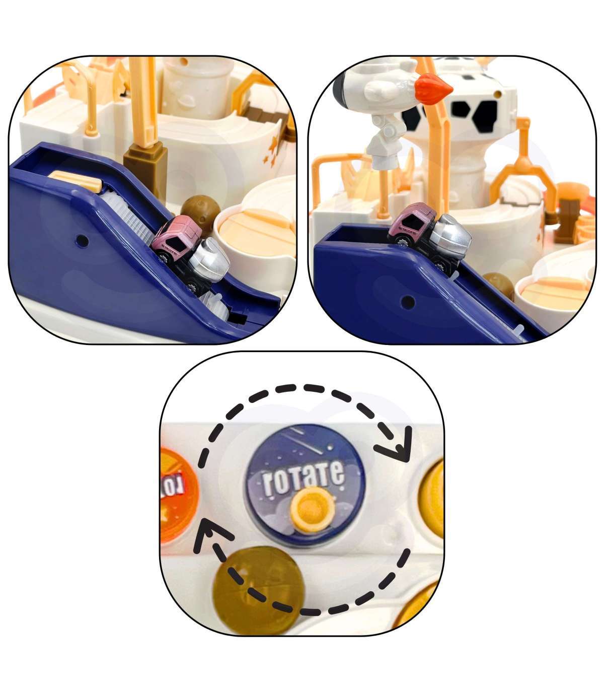 Interaktiivne takistusrada "Astronaudi kosmiline seiklus" on erakordne kingitus väikestele avastajatele, kes ihaldavad põnevaid seiklusi ja unustamatuid väljakutseid. See on rohkem kui mänguasi - tõeline areen, kus lapsed saavad kehastuda juhtideks ja ületada erinevaid takistusi. Tänu läbimõeldud ehitusele ja eri elementidele pakub mänguasi unustamatuid hetki täis põnevust ja väljakutseid. See on ideaalne vahend kujutlusvõime arendamiseks ja peenmotoorika arendamiseks, mis samal ajal pakub hulgaliselt lõbu. Autode rada tagab mitte ainult sõiduvõimaluse, vaid sisaldab ka dünaamilisi, interaktiivseid elemente, mida juhitakse nuppude ja pöördnuppude abil. See on põnev mäng, mis nõuab keskendumist ja osavust. Komplektis on kolm autot, mis võivad lapse kujutlusvõimest lähtuvalt vabas vormis rada avastada. Sõidukid rikastavad mängu või võimaldavad lastel rajal võistelda. Rada läbida tundub lihtne, kuid mitmed elemendid, näiteks hammasrattad või tõstetavad sillad, muudavad reisi adrenaliinirikkaks.
