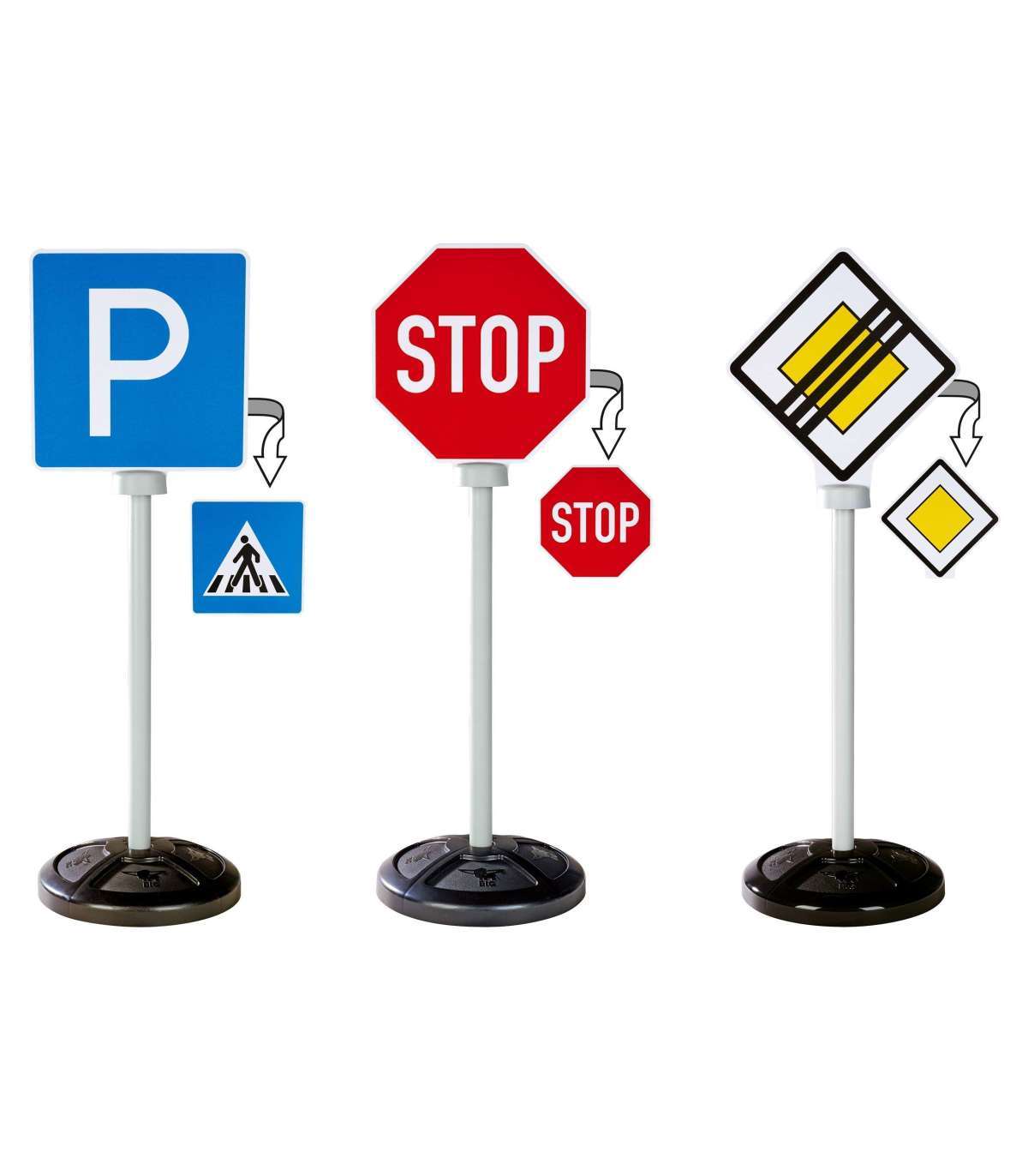 - Hariv komplekt – 3 liiklusmärki 5 erineva tähendusega, mis aitavad lastel mõista põhilisi liiklusreegleid.